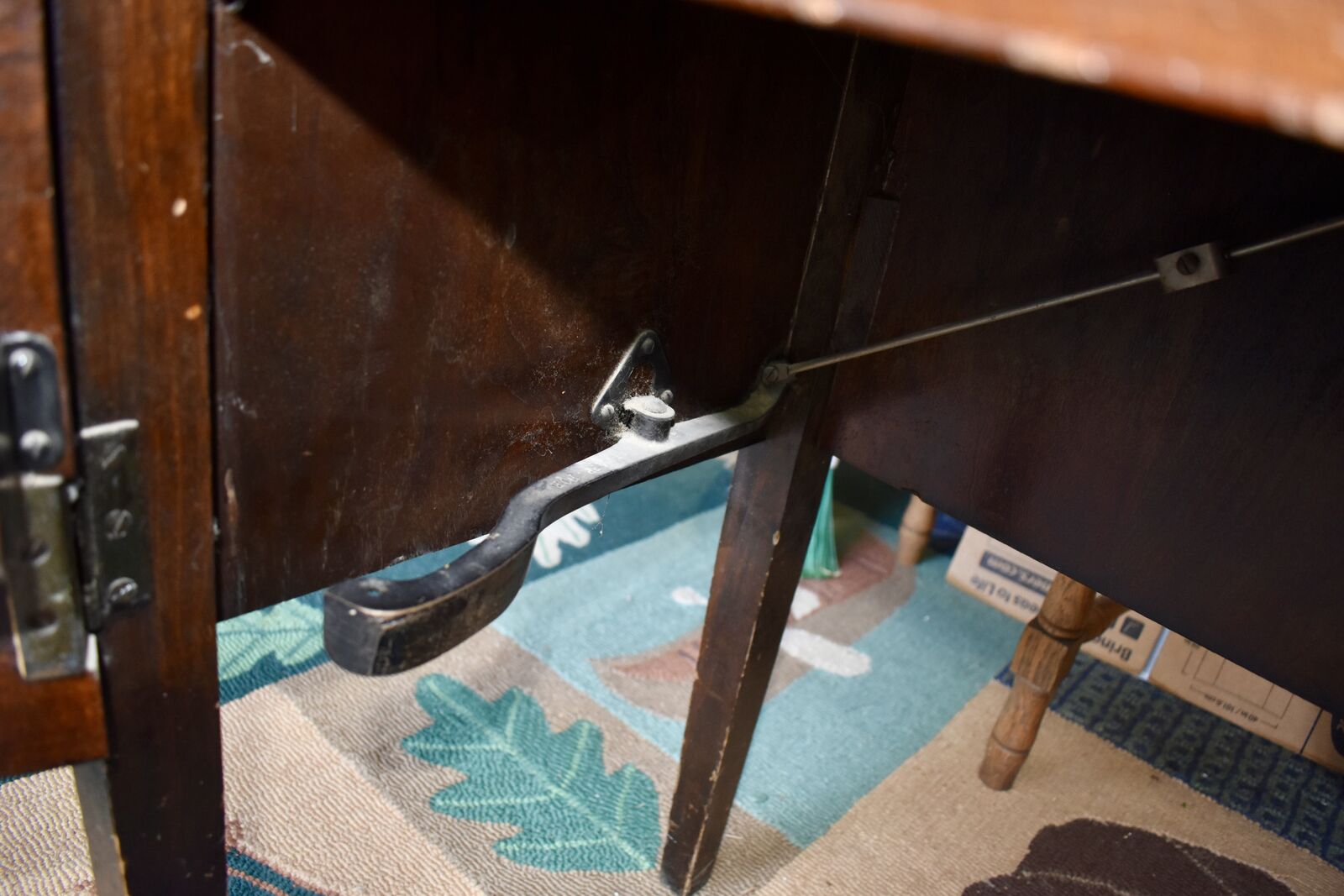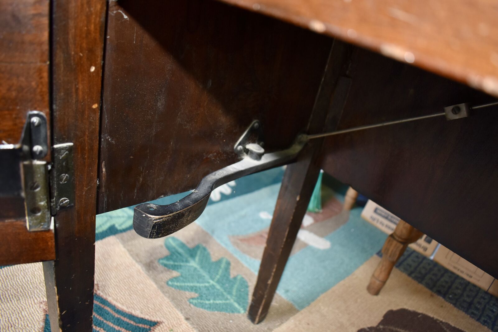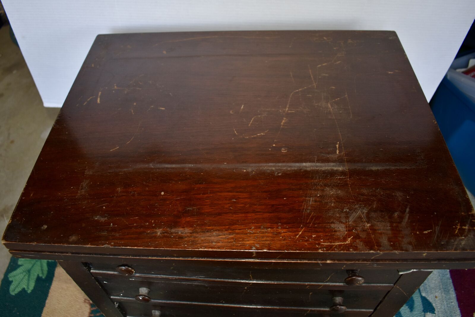 IT MEASURES…It is approx. 30 1/2 inches tall, 23 3/4 inches wide when the table is not open. It is 16 !/2 inches deep. With the table open it measures… approx. 47 1/2 inches