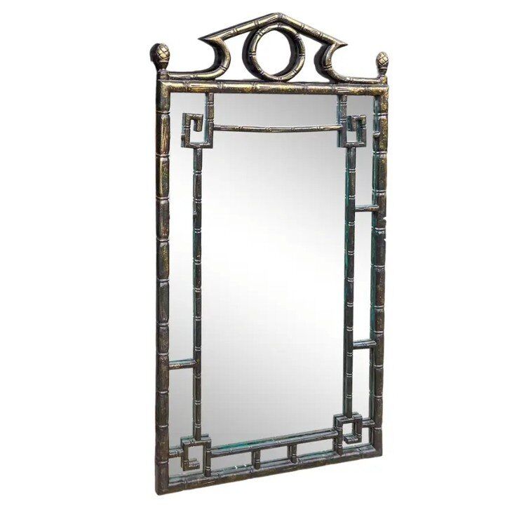 Hollywood Regency MCM this mirror looks so much better in person. 49 H x 26 W x 1.25 D These mirrors can sell for over $1000 online.