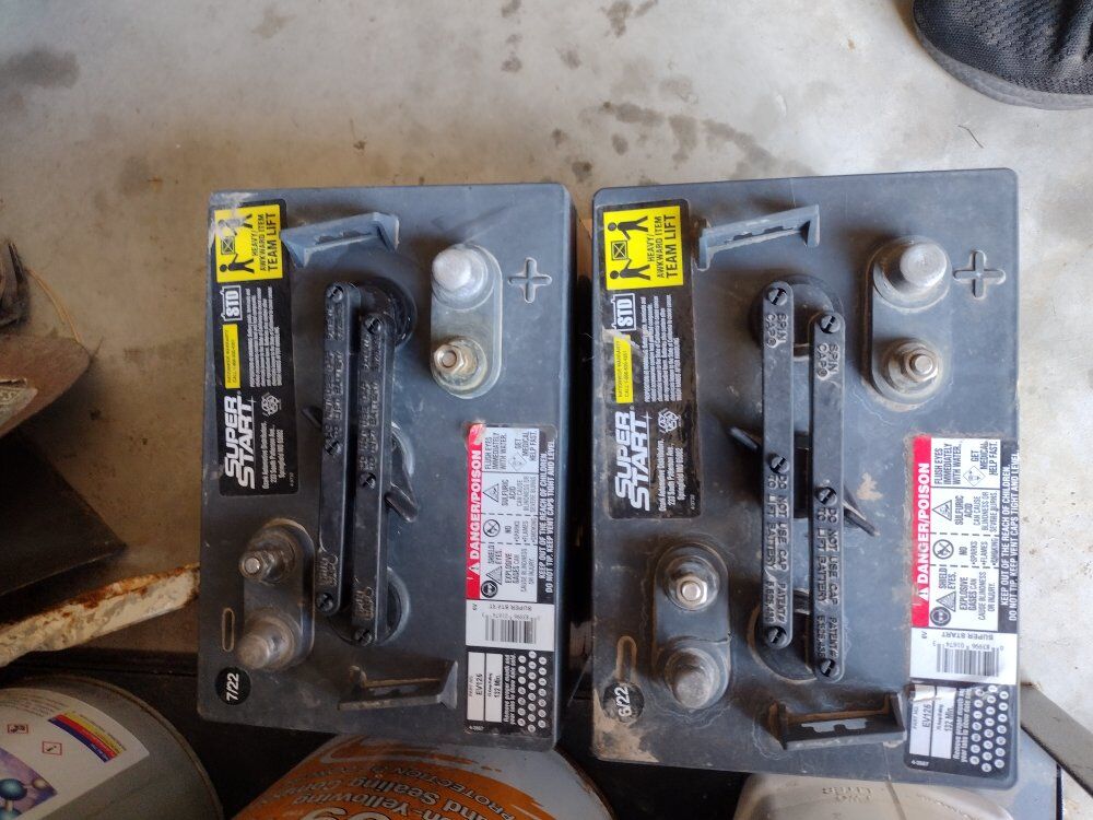 huge heavy deep cycle batteries. good for your RV or boat. high capacity. good batteries $100 for the pair made in 6/22 and 7/22 . batteries still work great and will run your camper all night