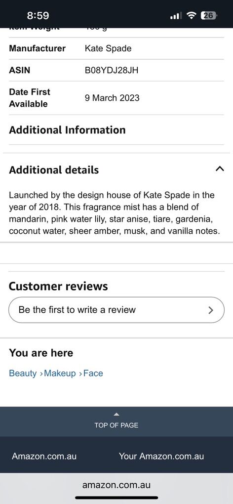 VenmoKate Spade in full bloom face mist spray. This smells wonderful. I can’t find the lid. Works perfectly. Smoke free home. Porch pick up in Alpine. Cash or Venmo.