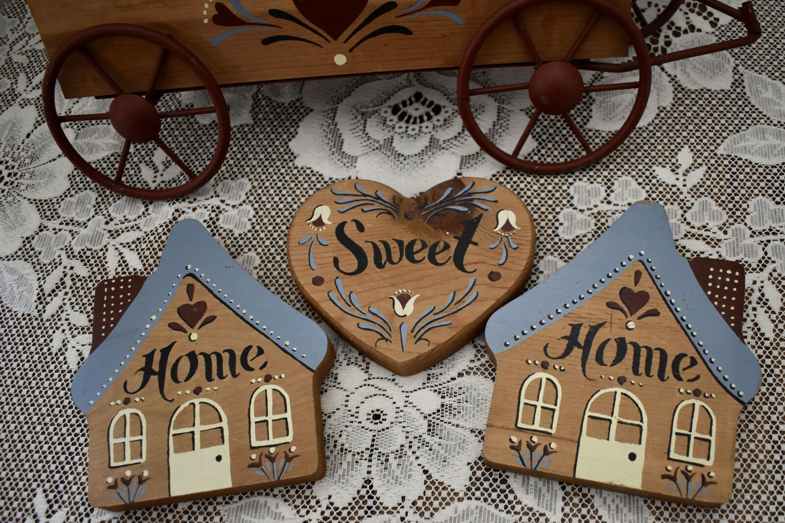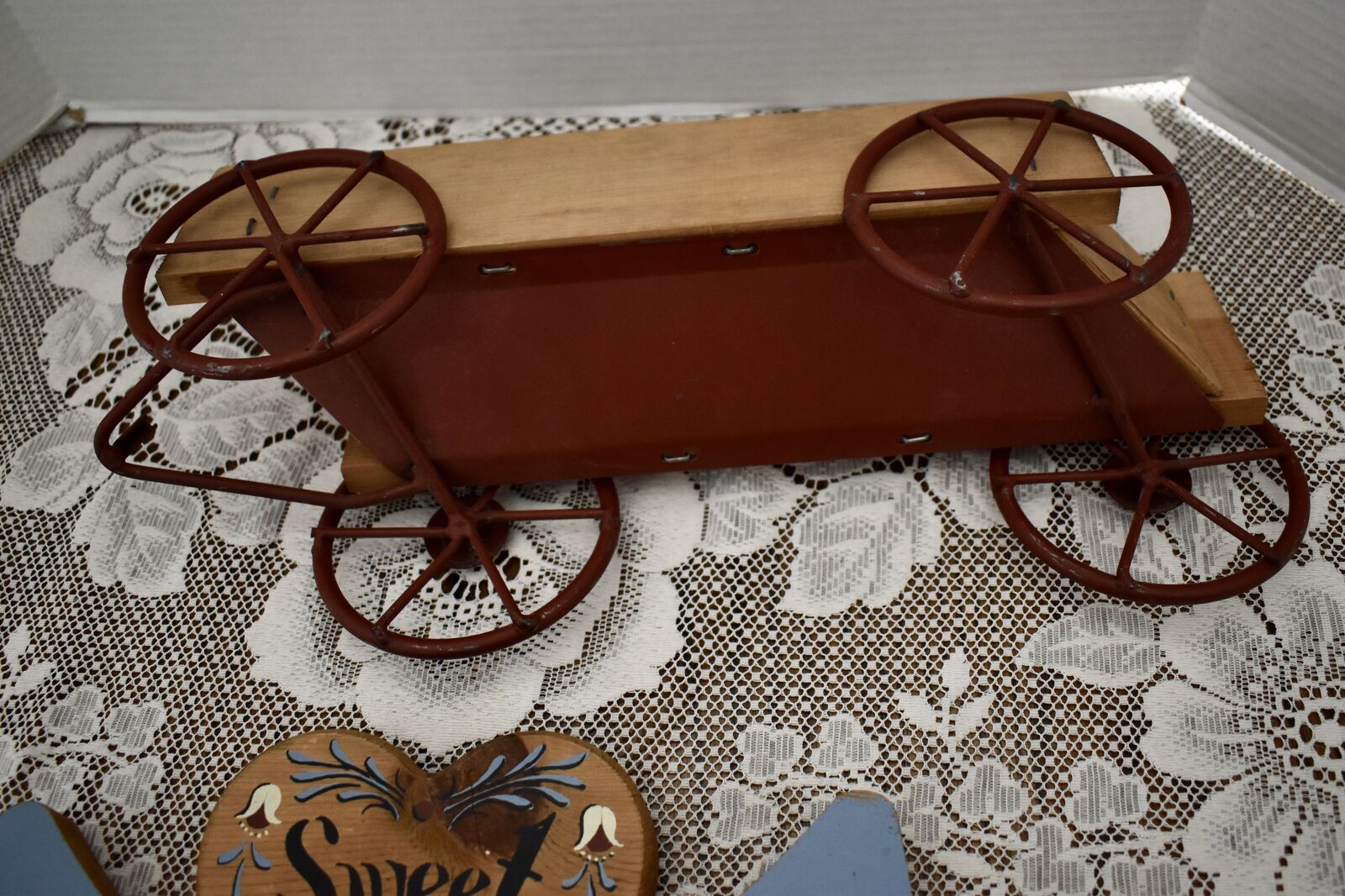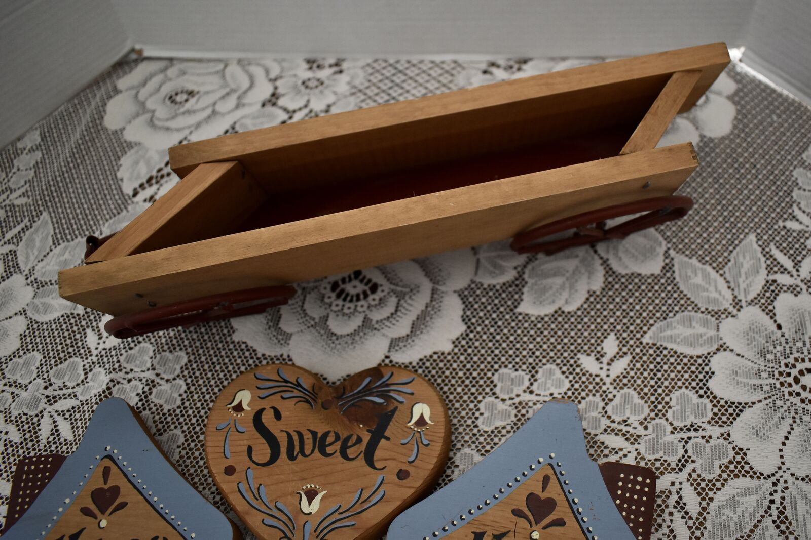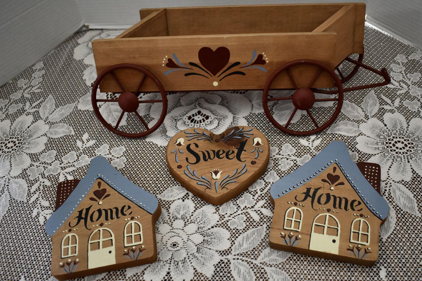 IT MEASURES… The wooden wagon sits approx. 6 inches tall on the wall and it is approx. 15 1/2 inches wide from end to end and 4 1/2 inches deep. The House shape is approx. 5 3/4 inches tall and 5 1/4 inches wide. The Heart shape is approximately. 5 inches wide and 4 1/2 inches tall. The inside area of the wagon measures.. approx. 2 1/4 inches deep and 2 1/2 inches tall and it is approx. 11 inches wide across ( this area is great for putting little flowers or other fun foliage or whatever you desire to do inside of.