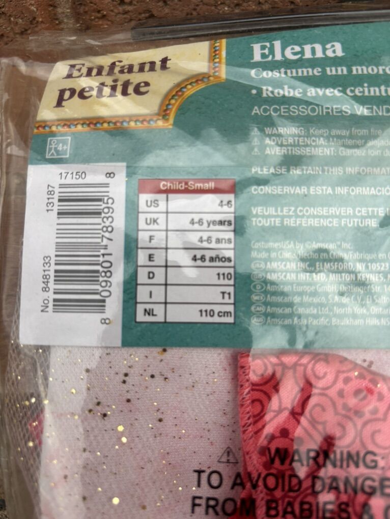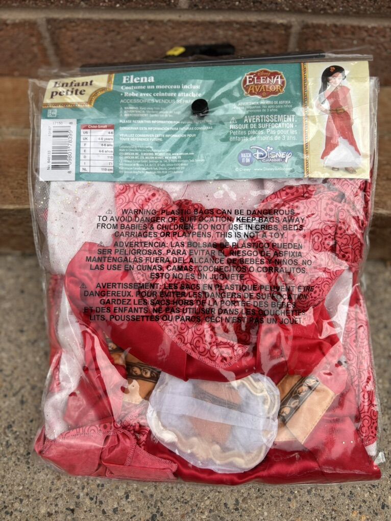 Elegant and stylish brand new Disney Elena Avalor costume for a child between 4-6 ages. It comes with a dress and a belt.