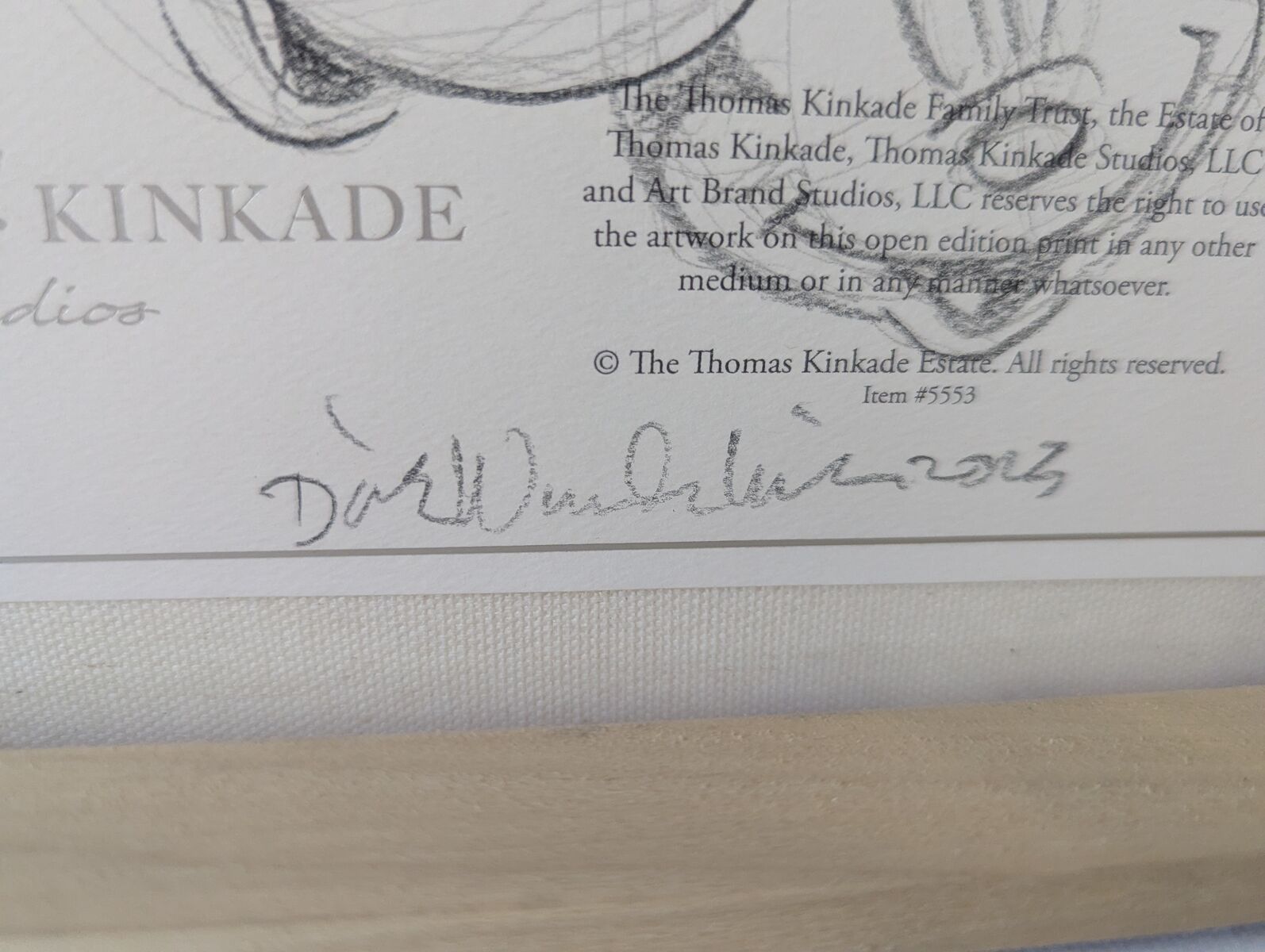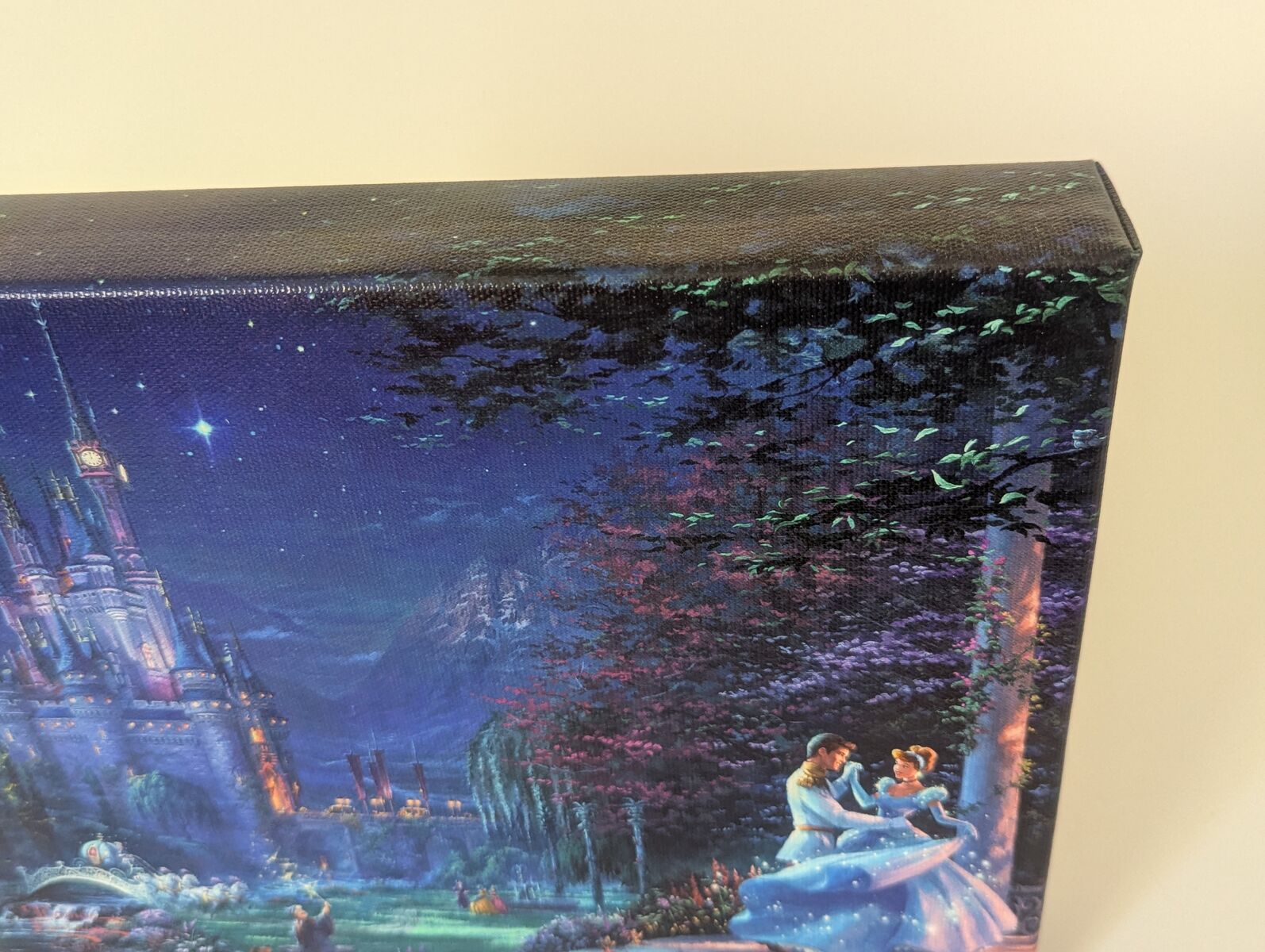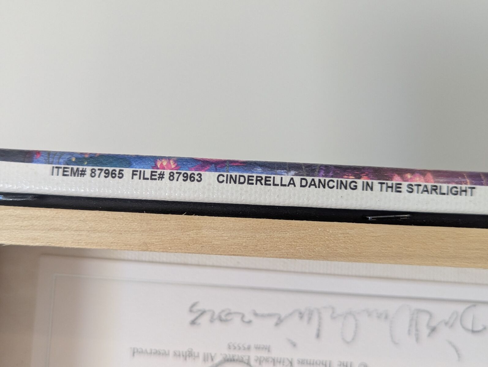 VenmoThe product is a signed 10x8 print of T. Kincaide Cinderella Dancing in the Starlight, created by artist Thomas Kinkade. The print features a Disney theme with Cinderella as the subject, and comes with a Certificate of Authenticity (COA) issued by Thomas Kinkade Studios.
