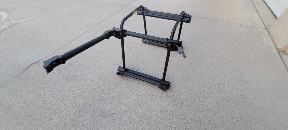 Venmoski carrier that fits several snowboards or skis back-to-back. Attaches to your bike carrier, for example Yakima full tilt 4 or 5 or even Thule. comes with 2 keys.