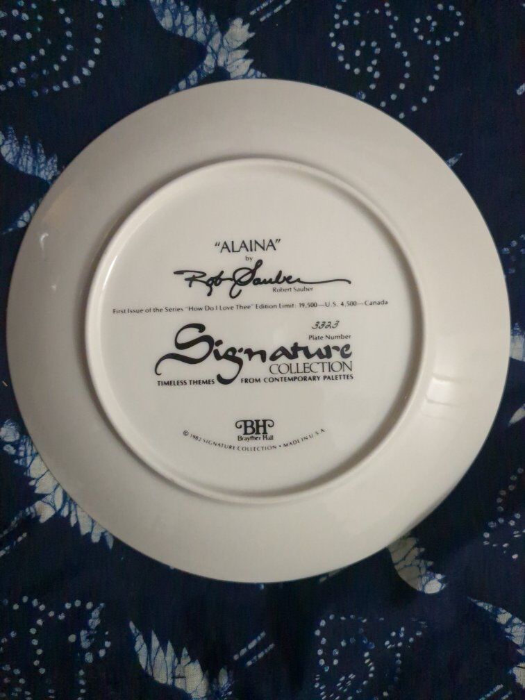 VenmoCollectors plate from Robert Sauber of "Alaina" that measures 8.5" in diameter. $15. Plate # 3323. Plus trimmed in gold.