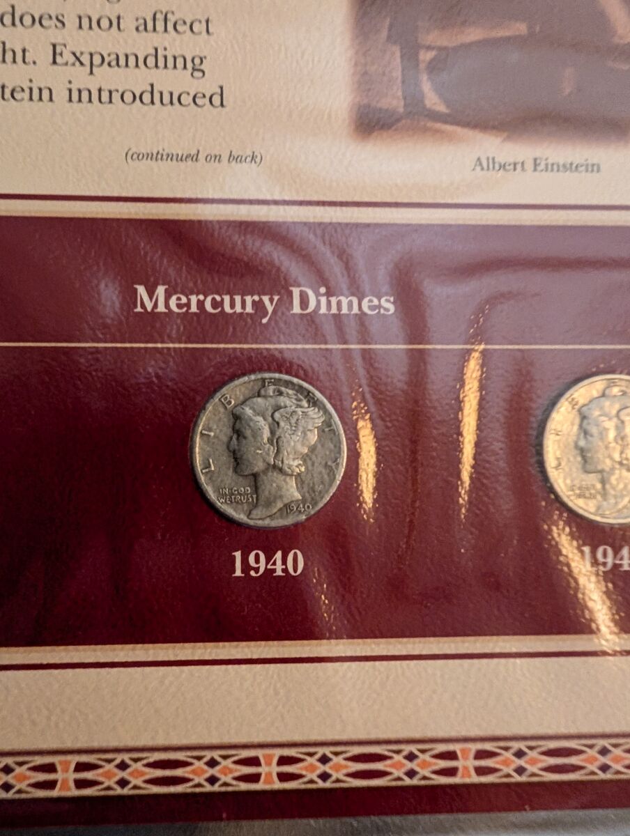 PayPalThe product is a set of three uncirculated 1939, 1940, and 1941 Mercury dimes, each composed of 90% silver. These coins are from the United States and feature the iconic Mercury design. In addition to the dimes, the set includes an Albert Einstein stamp and a related story, enhancing the historical and collectible aspect of the item. These coins are in mint condition and are a valuable addition to any coin collection. 75 dollars or best offer. Will ship world wide.