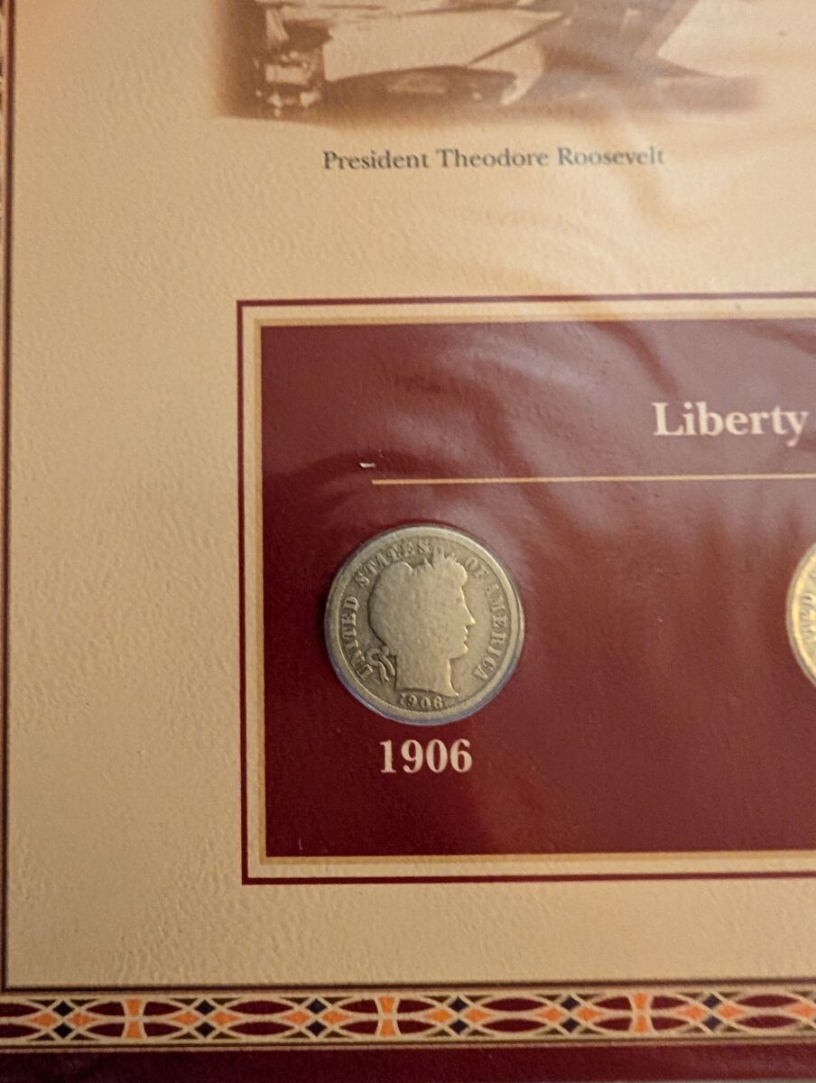 PayPalThe product is a set of four circulated Liberty dimes from 1906, 1907, and 1908, along with a Theodore Roosevelt stamp issued on November 18, 1955. These coins are all from the United States and are uncertified. The denomination of the dimes is 10 cents, silver, and they feature President Theodore Roosevelt on the obverse. This collectible set would be a valuable addition to any coin or stamp collection, showcasing pieces from different eras and aspects of American numismatics. 75 dollars or best offer. Will ship world wide.