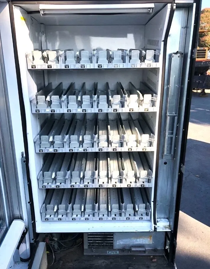 Up for sale is a Vendo Vue 40 glass-front beverage vending machine, renowned for its innovative robotic delivery system and sleek, modern design. This machine is perfect for high-traffic locations such as offices, schools, gyms, and retail spaces.