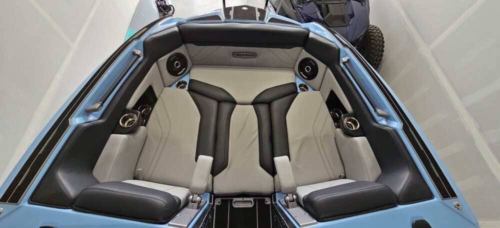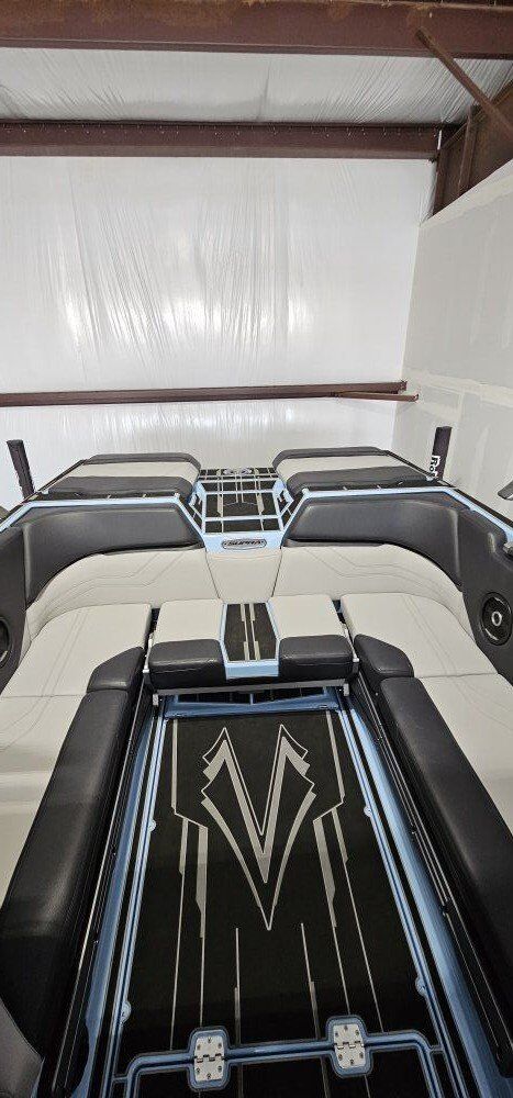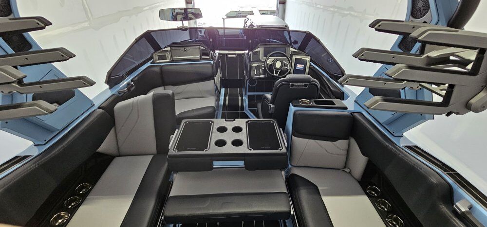 STANDARD OPTIONS: •SWELL SURF SYSTEM •AUTOWAKE SYSTEM •4,700 LBS SUBFLOOR BALLAST •CONVERTIBLE/ SLIDING REAR BENCH SEAT/ TABLE •IN-FLOOR COOLER CAVITY •HEATED DRIVER AND PASSENGER SEAT •ELECTRIC ADJUSTING DRIVERS SEAT •BIMINI WITH SURF STORAGE POCKETS •RGB LIGHTS THROUGHT BOAT •CLAMPING SWIVEL BOARD RACKS •TRANSOM BOARD STORAGE •WIRELESS CHARGING •POWER FOLDING TOWER ON BOARD BATTERY TENDER •PASSENGER CONTROL SCREEN