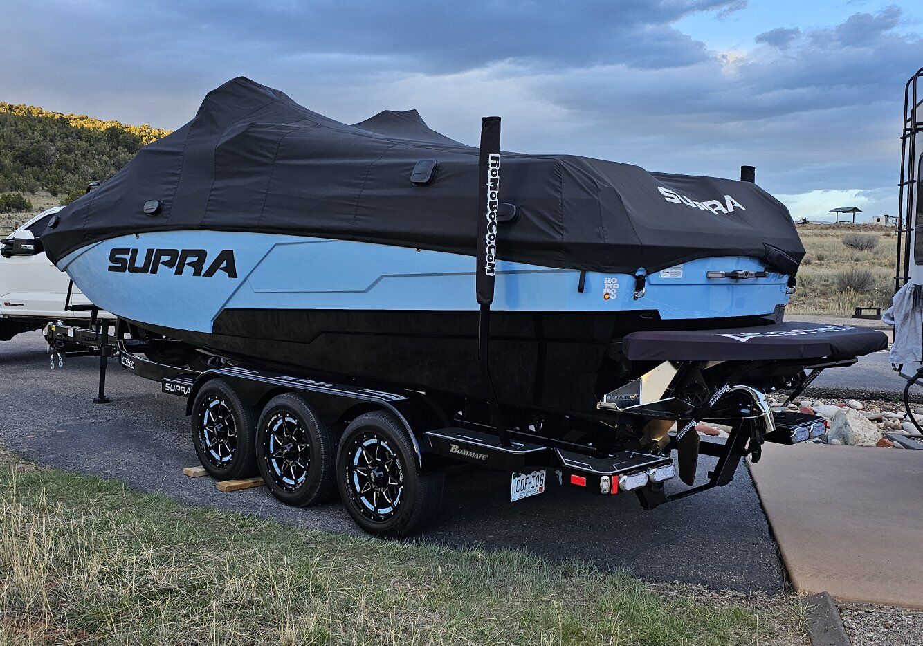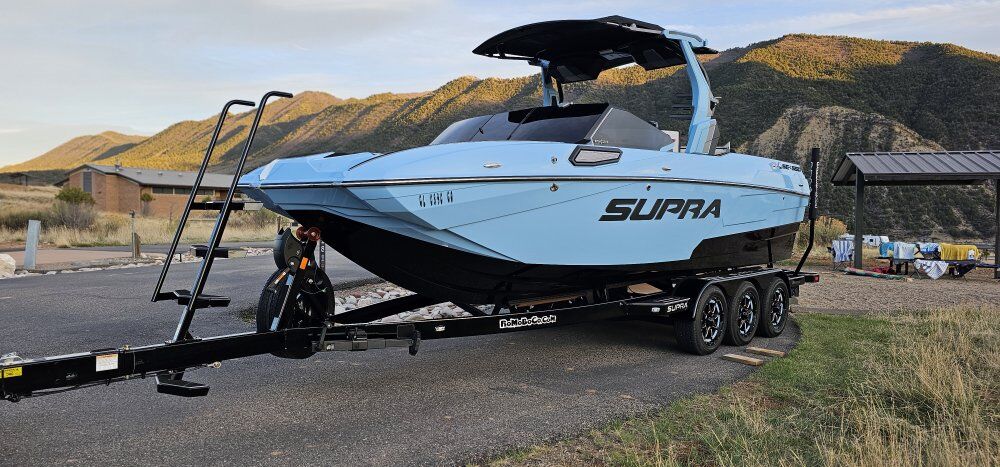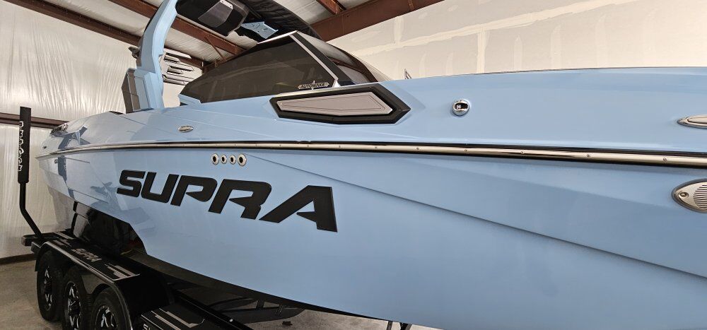 ADDED OPTIONS: •INDMAR 6.2L FORD RAPTOR SUPERCHARGED 575 •BOATMATE TRI AXLE TRAILER WITH SPARE •DUAL STERN THRUSTERS •TOWER SPEAKERS, BLACK 2 PAIR W/ 8 CHANNEL AMP •POWER SWIM PLATFORM DROP STEP •UNDERWATER TRANSOM LIGHTS, DUAL INTENSE RGB •SUNDECK FLIP-UP BACKS •HEATER, 3 TUBE, 1 FIXED PORT •BOAT COVER OVER TOWER DOWN •BLACK NONSKID- 3 COLOR -BLACK/ SILVER CLOUD •SUN SHADE, STERN, 2 POLE W/CANVAS •TOWER ACCENT BLACK •TOWER ACCENT SLATE BLUE •PHENDER PRO CLEAT AND GOPRO ATTACHMENT •WINDOW TINT •INTERIOR WASH DOWN SYSTEM •TOWER DOCKING LIGHTS •SHIPPING COVER •AUDIO REMOTE TRANSOM •PTMEDGE VR-140X MIRROR UPGRADE, •DARK GRAY THREAD- BLACK BLACK THREAD WSTANDARD BLACK VINYLM •LED RUNWAY LIGHTING UPGRADED HIGHER ALTITUDE PROP