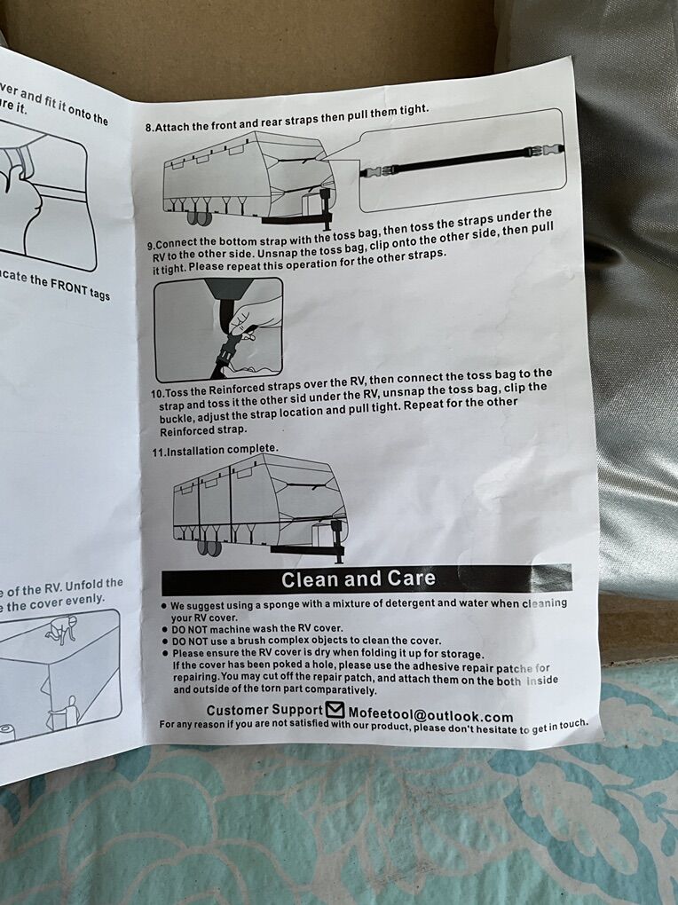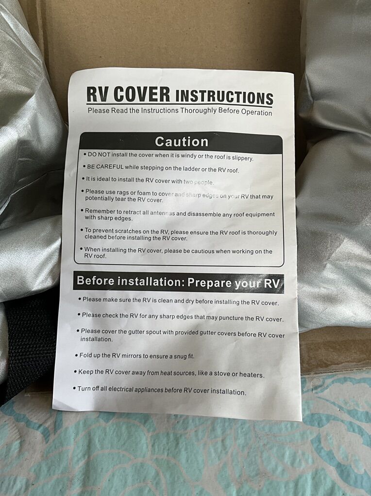 RV cover includes 4 wheel covers. Used this only once on our 27 foot pull-along trailer. It appears to be long enough for up a 30 foot rig. Decided to sell trailer so don’t need this cover again.