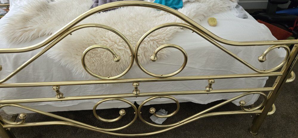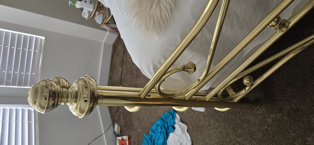 ZelleThe railing is metal golden color. This has been a great bed.We are changing our deco. We'll drop off $100. Pick up spanish fork Can also pick up in smithfield