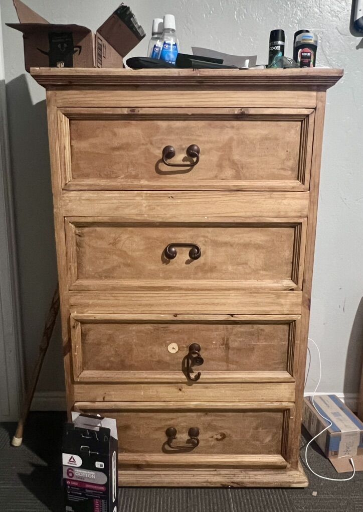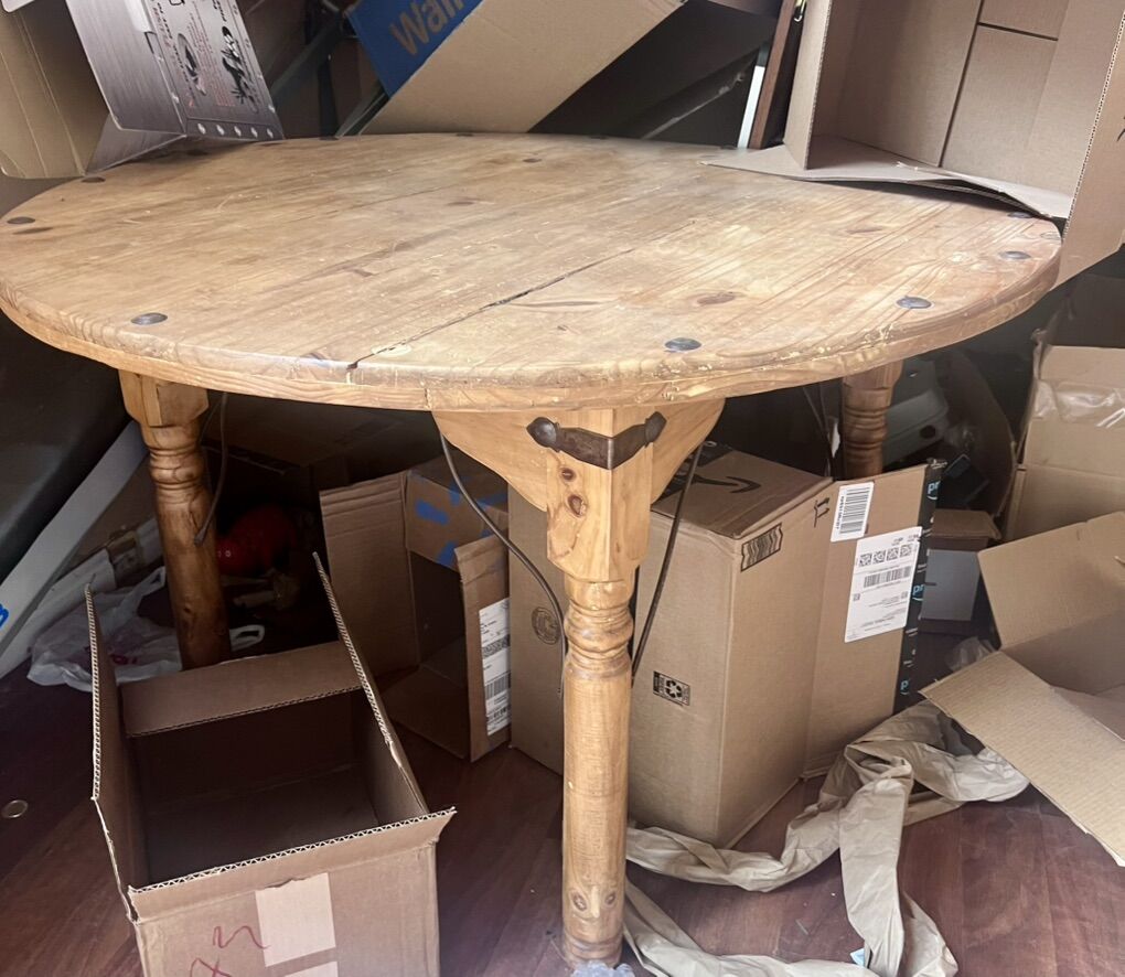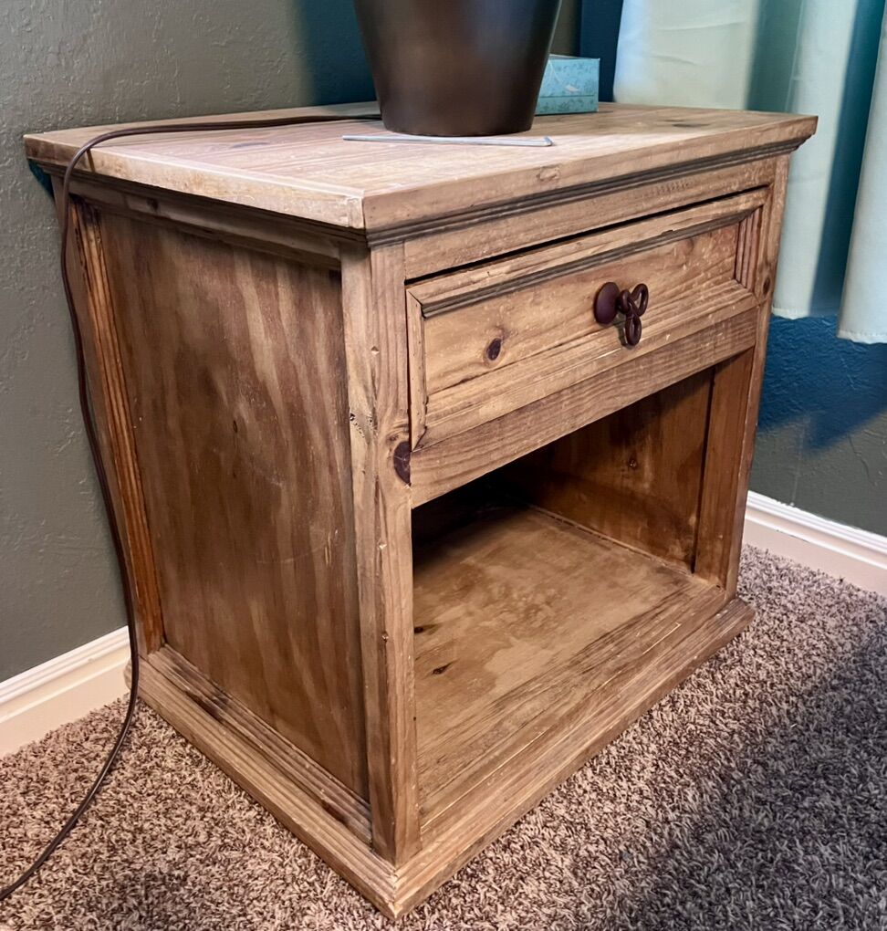 The pieces are all sturdy and functional but do show wear and tear (scuffs, scratches, and marks from use). Great for a cabin, rental, or anyone who likes rustic furniture with character.