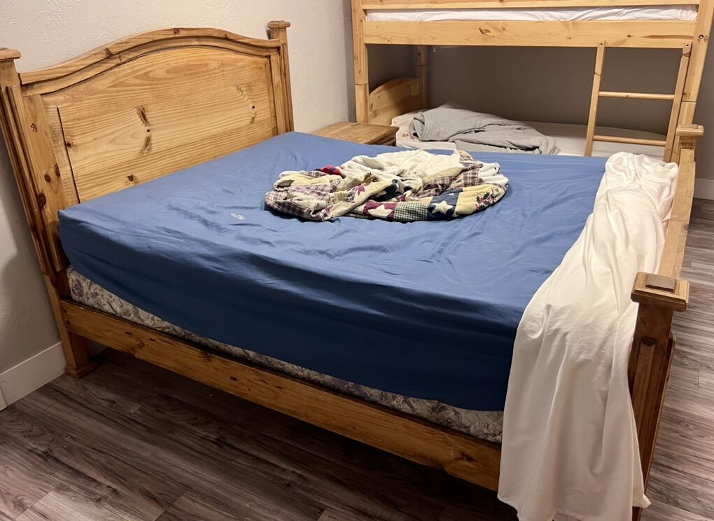 ZelleOBO Solid pine wood furniture set with a rustic cabin/farmhouse look. Includes:\