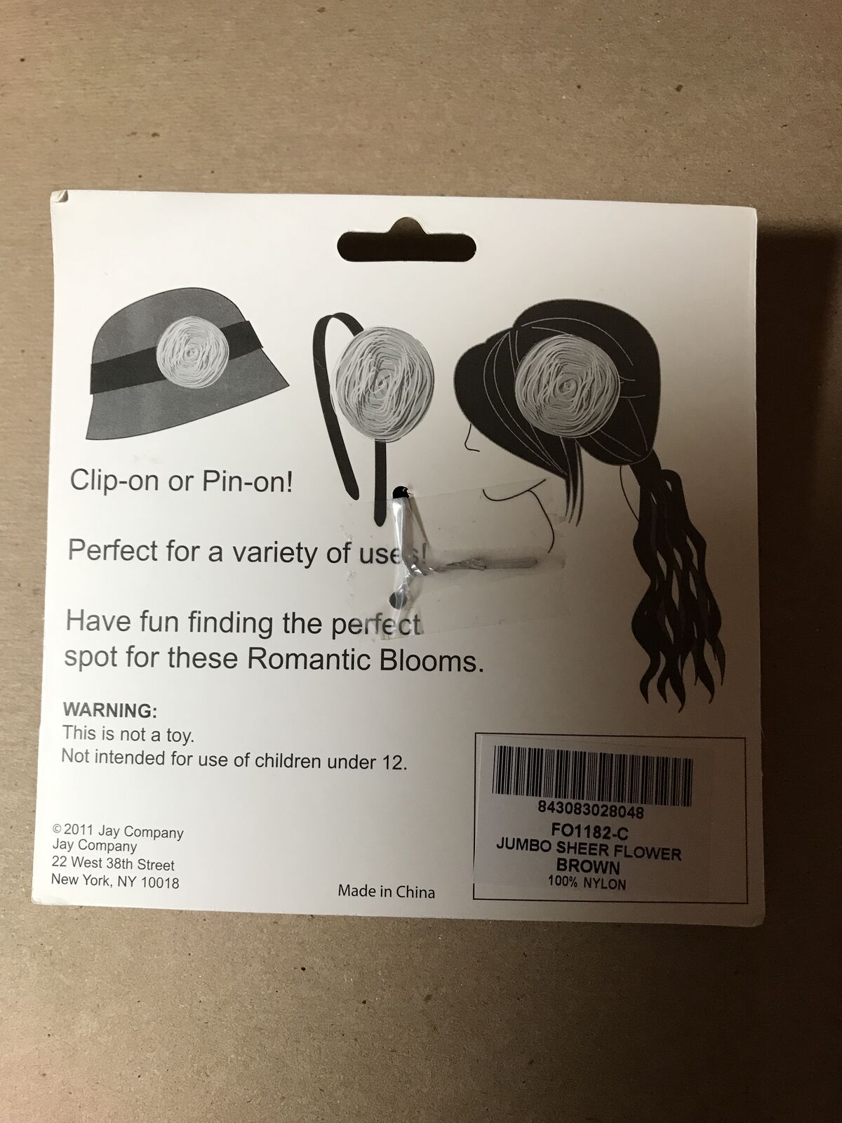 Clip-on or Pin-on Jumbo Sheer Flower Brown 4 1/2”, New