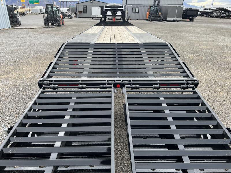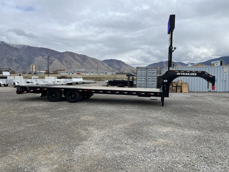 Stock Number: PJ6206 Trailer Includes Following Options: Dovetail w/ Flip Over Monster Ramps Dual Front Hydraulic Jacks Standard Features: 25,900 lbs. GVWR 12,000 lb. x (2) G.A.W.R. 3/8" Grade 70 Safety Chain w/Clevis hook (2 each) Spring Loaded Drop Leg Jacks (10,000 lb.) 2 - 12,000# Axles (Dexter) Electric Axle 5-Leaf Slipper Spring Suspension Dual 16" Black Wheels (8 on 6.5" Bolt Pattern) ST235/80R16 Radial Tires (3,080 lbs.) 3-5/8" x 1-1/2" (ID) Stake Pockets Diamond Plate Low-Pro Fenders 12" x 19 lb. I-beam Tongue 3" Channel Crossmembers on 16" Centers 2" Treated Pine Lumber Deck 102" Wide Deck DOT Approved Flushmount Lifetime LED Lights All-Weather Wiring Harness (7-way RV) Powdercoat 5 year Dexter Axle Warranty WASATCH TRAILER SALES - LARGEST TRAILER SELECTION IN UTAH Springville: (801) 528-1581 | 1180 S 2000 W, Springville UT, 84663