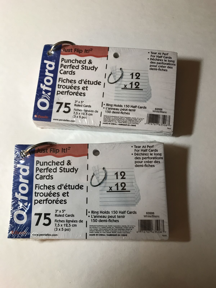 Oxford Punched & Perfed Study Cards 75 Count Unless Broke in Half Ring will hold 150. Pack of 2. Great for students school supplies. Put your favorite quotes on these cards.