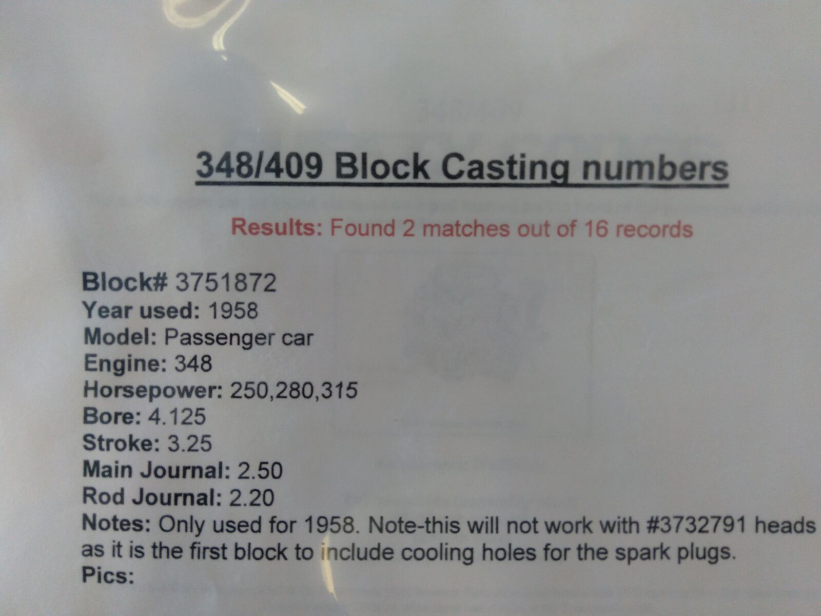 CASTING # 3751872 All New Internals Call for any more needed information, leave message if no answer.