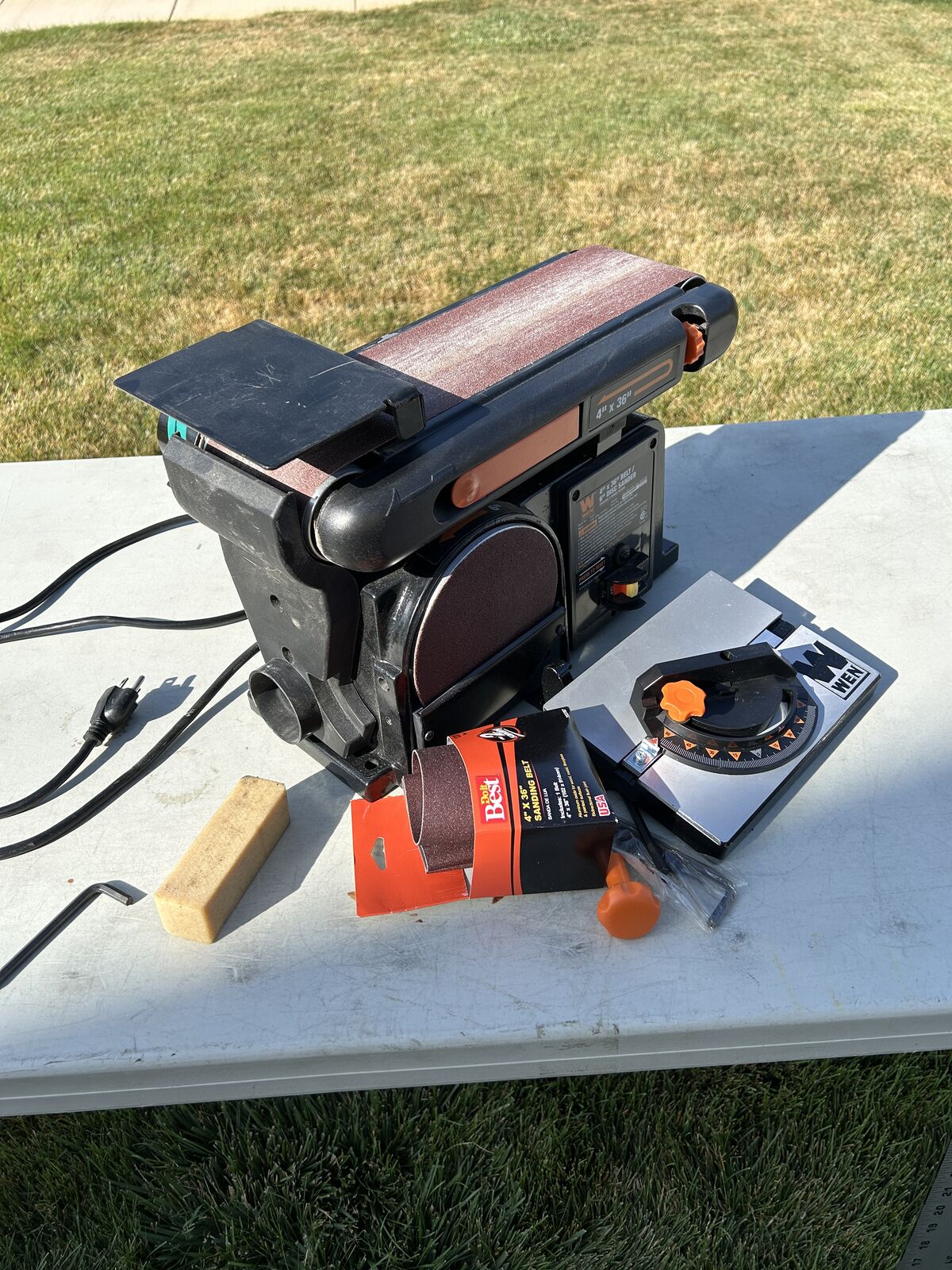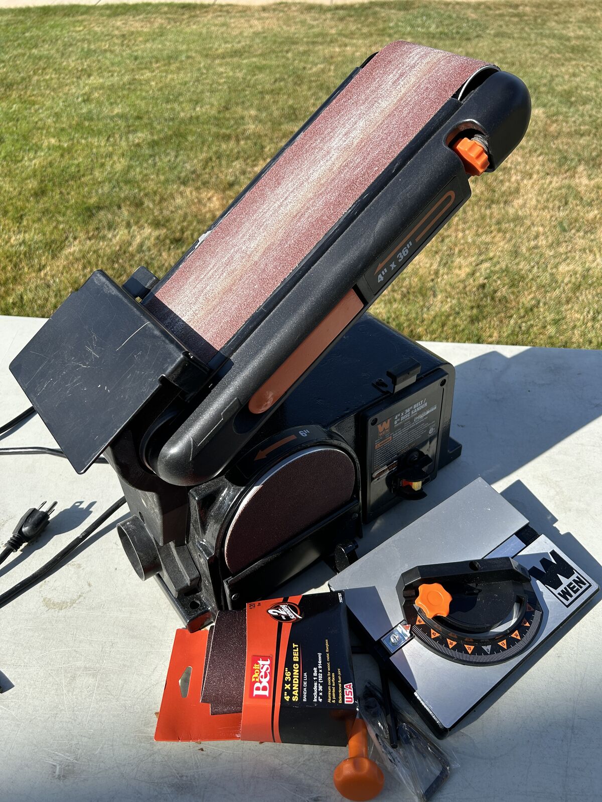 No Tax $$$ - Cash only, price firm. Chicago Electric reciprocating saw with 3 blades $20. Belt sander no longer for sale.