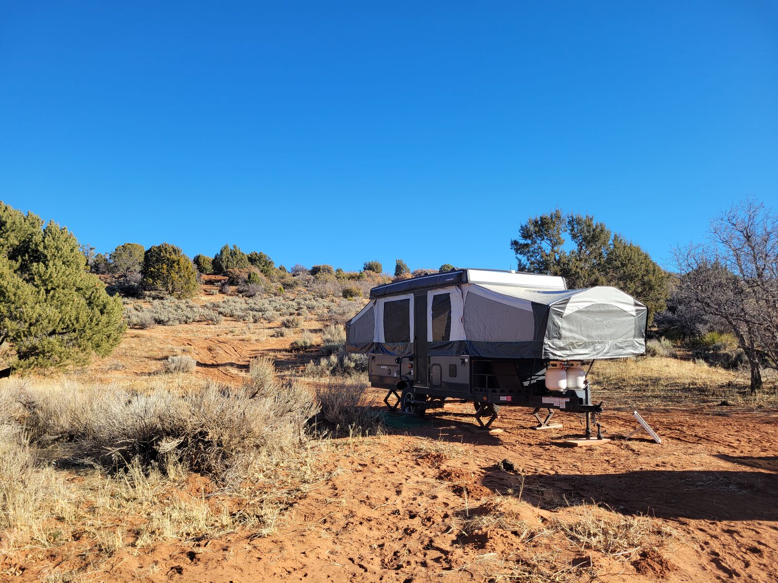 2018 Foerst River 2280BHESP off road tent camper. Used less than 20 times. This has two slide out beds, Kitchen, indoor/outdoor shower, toilet, heater, awning, outdoor grill, #2 propane tanks, #2 batteries, dinette/table and sleeps up to #5 people comfortably.