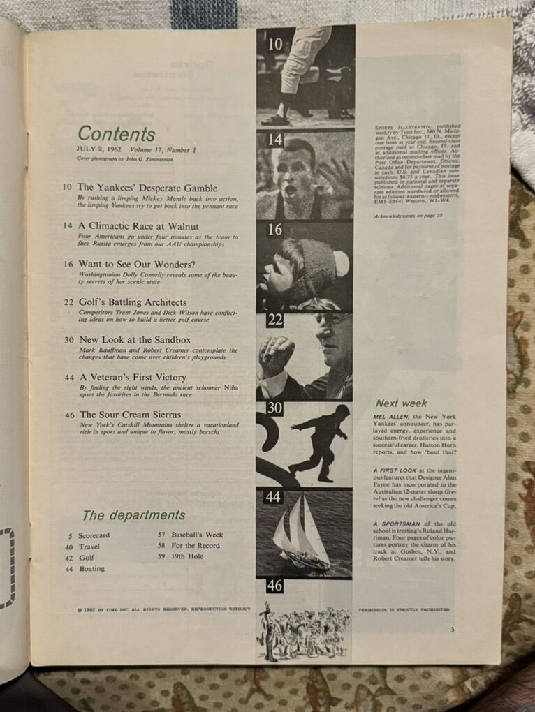 Sports Illustrated Magazine featuring Mickey Mantle on the cover, dated July 2, 1962. This original edition is a must-have for New York Yankees fans and vintage sports memorabilia collectors alike. Showcasing the legendary player in his prime, this magazine is a snapshot of baseball history and a tribute to one of the sport's most iconic figures.
