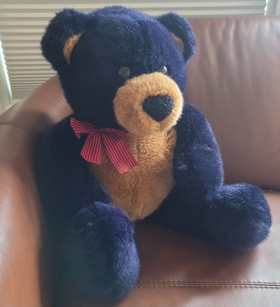 Vintage stuffed black and brown teddy bear. Very soft! In very good condition. Approximately 26" H. May pick up in Magna or Salt Lake.