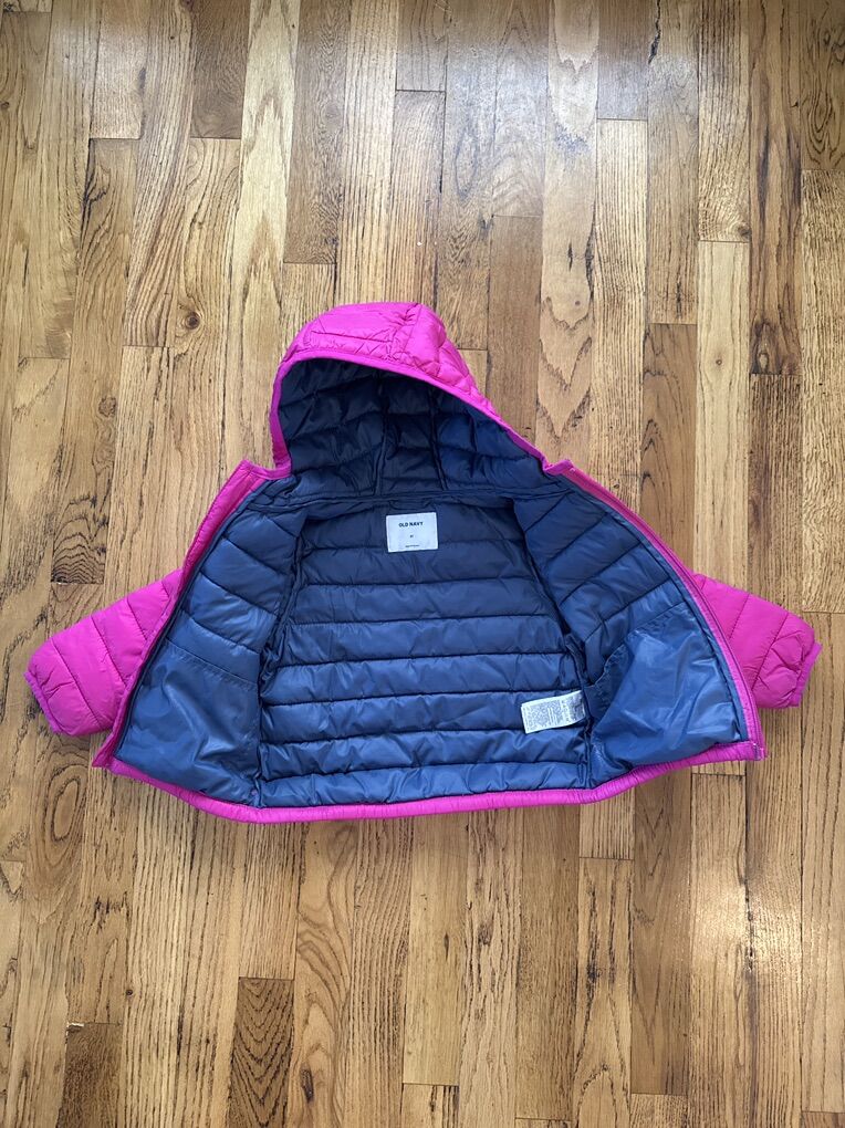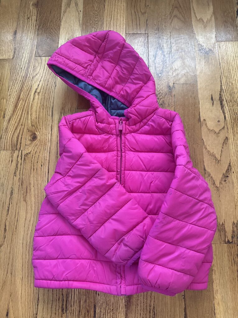 ApplePaySuper clean puffy coat in excellent condition, no damage. This was my daughter’s favorite coat! Zip-up with a hood and side pockets. Machine-washable. 3T Pet-free, smoke-free home.