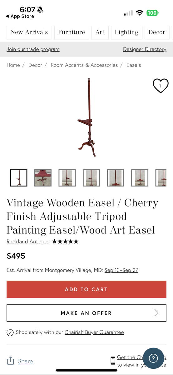 VenmoPerfect way to display your beautiful painting or photograph. Solid wood construction. Beautiful finish. Vintage Bombay Company Tall Wooden Easel / Bombay Company Cherry Finish Adjustable Tripod Painting Easel/Wood Art Easel