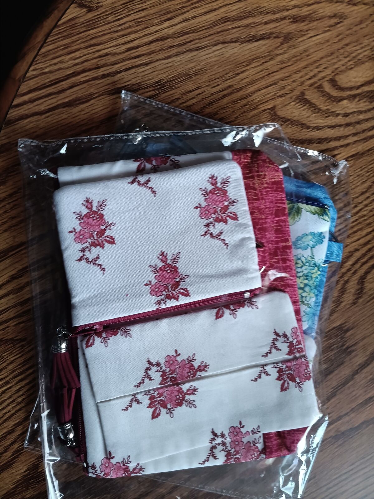 VenmoHandmade 3 piece cosmetic bag set. Includes zippered cosmetic bag 7.5" X 6", coin purse 4.5"X3.5" with tissue cover 5"X4". Tissue cover fits personal tissue packs. Cosmetic bag features external slash pockets. Zipper feature decorative pulls. on the cosmetic bag and coin purse, Some pieces are fully lined in coordinating fabric. Every bag is made with you in mind and with love. Hand sewn on my machine. Remember you can buy multiple sets at a discount and that each bag will be totally different from one of the other. Buy 1 to 20 the more you buy the better the price. ONLY THE SERIOUS CONTACT ME!!! ALL ITEMS ARE AVAILABLE. NO NEED TO ASK AND NOT SHOW UP.