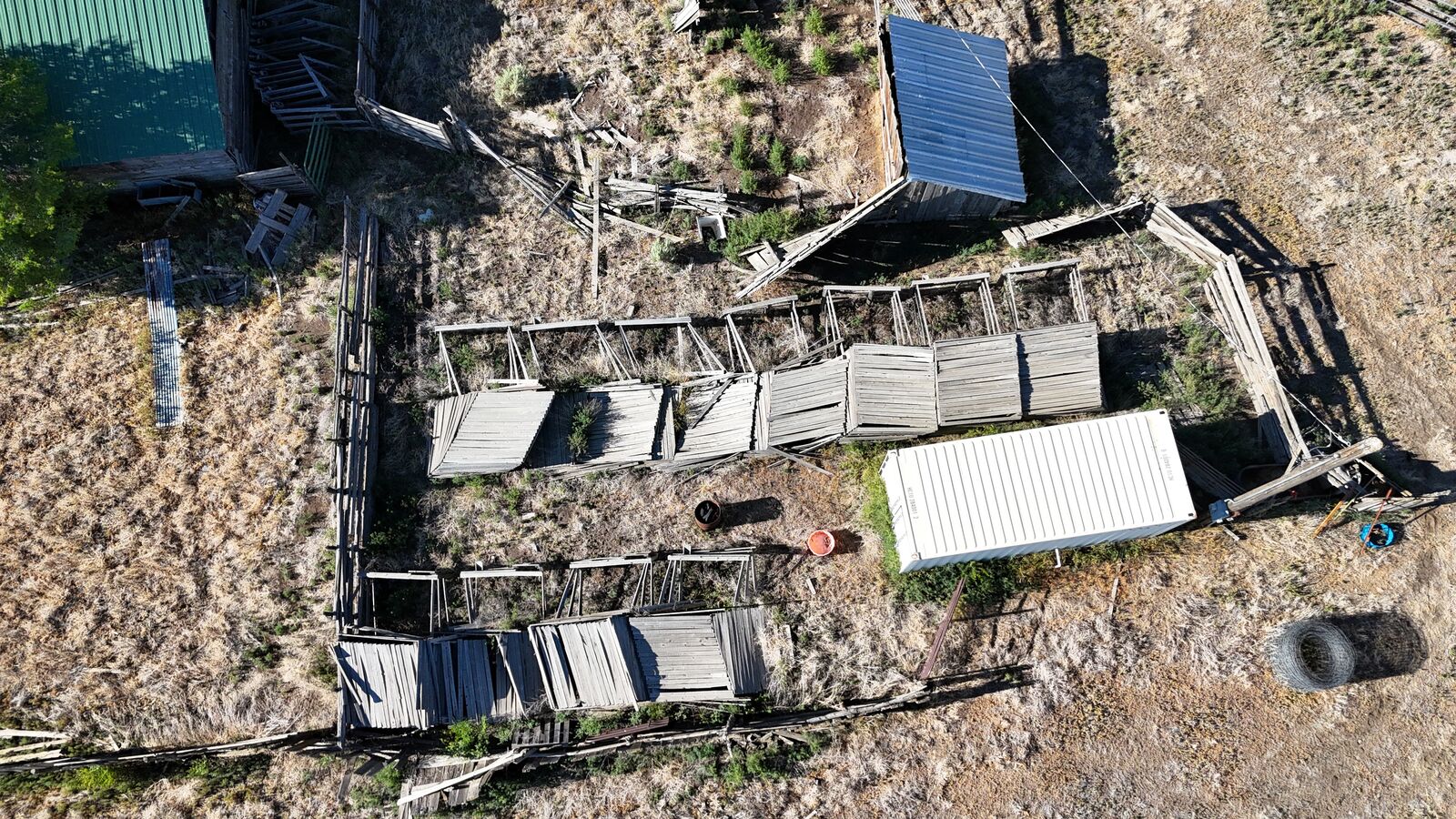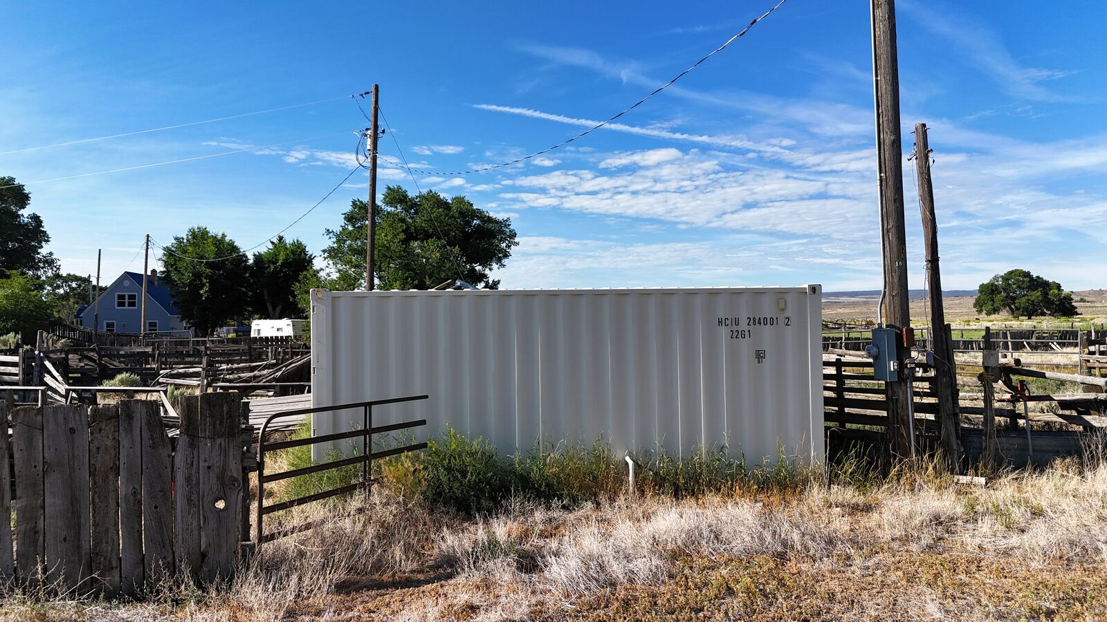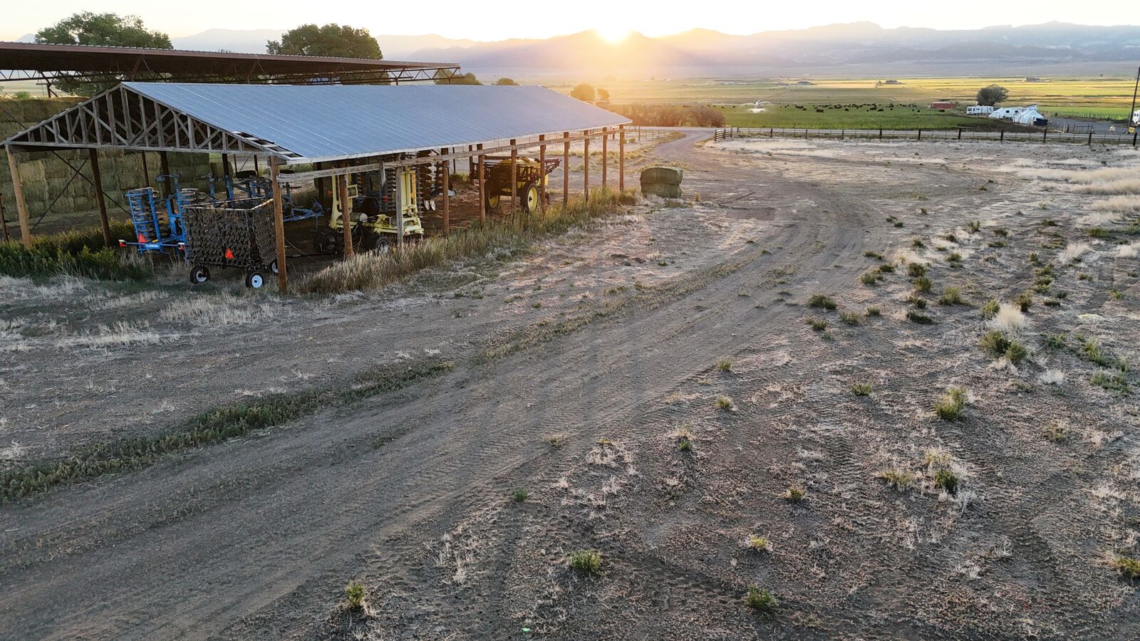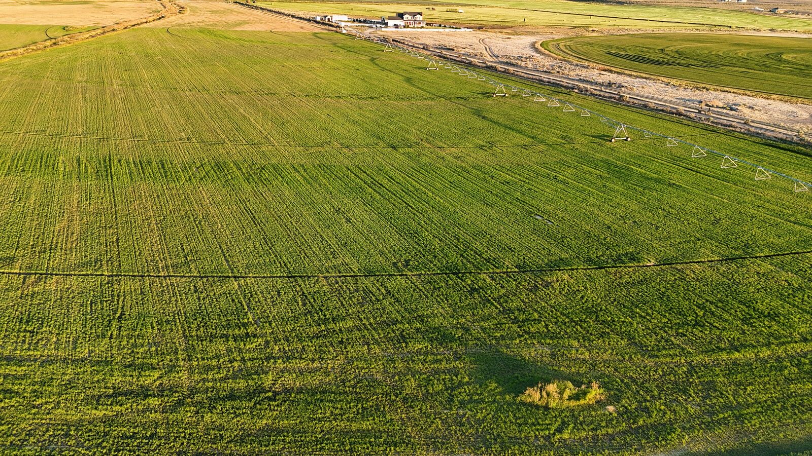 On-site improvements include two hay barns totaling 10,000 square feet of covered storage, perimeter fencing, stock corrals near the highway, and agricultural infrastructure already in place. Well depths in the area range from 80 to 150 feet, offering reliable water access.
