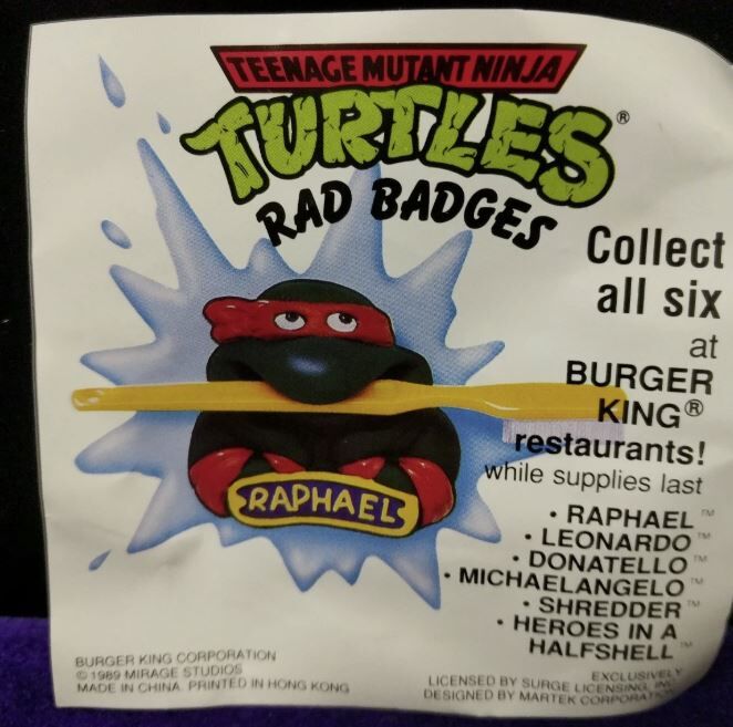 $10. Vintage 1989 TMNT Teenage Mutant Ninja Turtles Raphael Rad Badge from Burger King. Paper wrapper not included. Cash preferred. Pick up only in southwest Orem or American Fork.