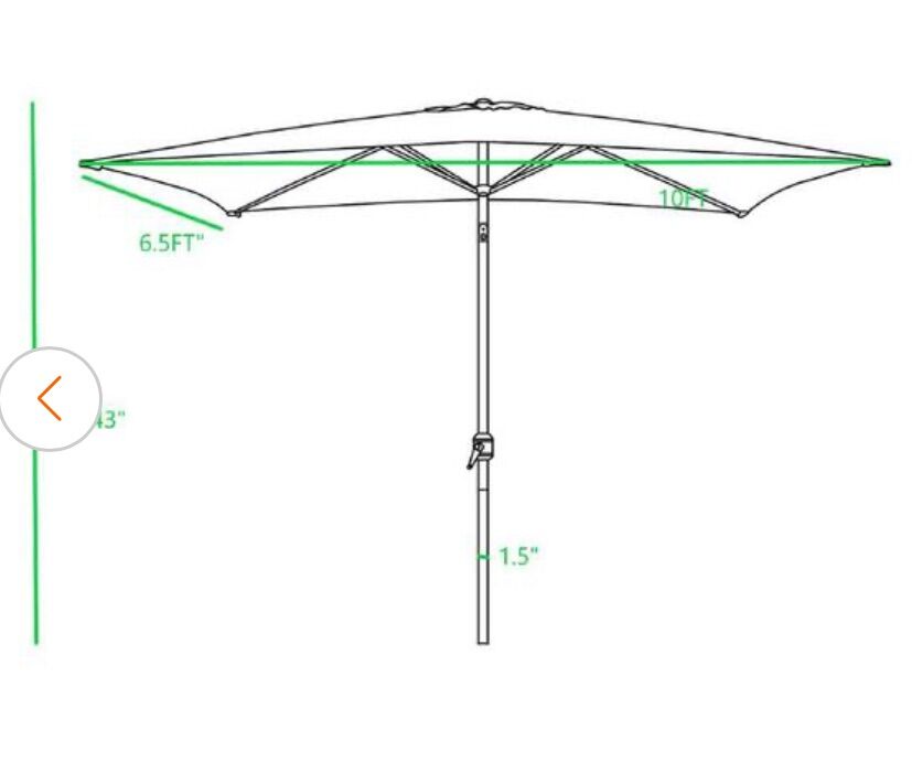 6.5 ft. x 10 ft. Dia rectangular patio straight umbrella for extra strength, featuring heavy-duty fabric is especially designed to keep you cool and comfortable, apply to the yard, square and other places. 6.5 ft. x 10 ft. Dia shades your area with at least 5 to 8 chairs and table, ideal for a both residential and commercial location. Please notice that never get wounded when you want to adjust the shading angle.