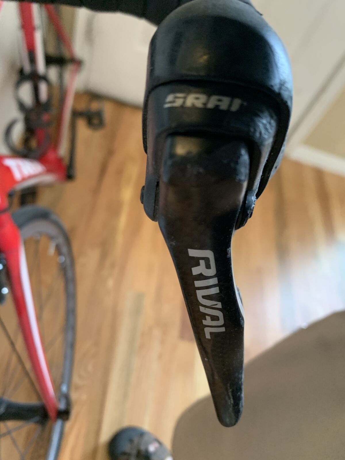It has a 56 cm carbon fiber frame, which is generally suitable for riders who are around 5'9" to 6'0" tall. It has Bontrager wheels and SRAM Rival components. The serial number on this bike is WTU288t204D.