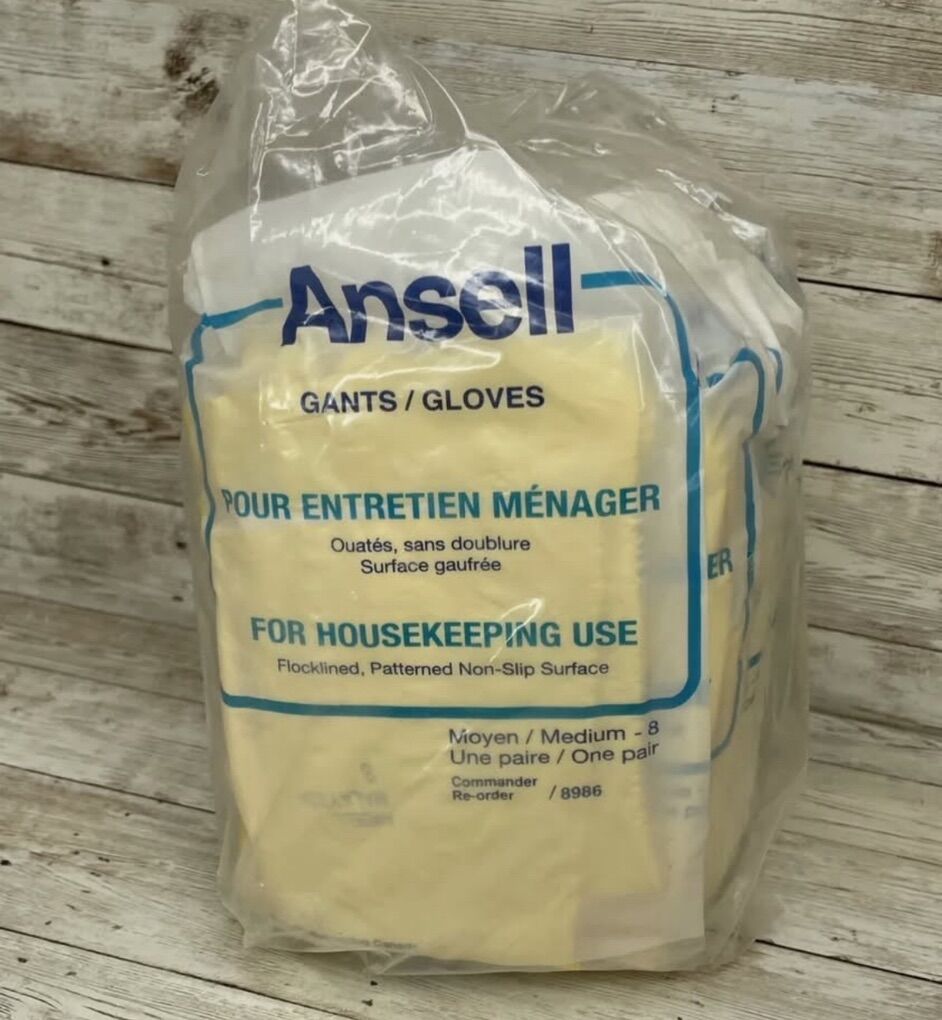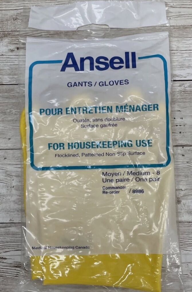 Venmo12 Pairs Ansell #8986 Yellow Latex Gloves For Housekeeping Use, Size: MED-8