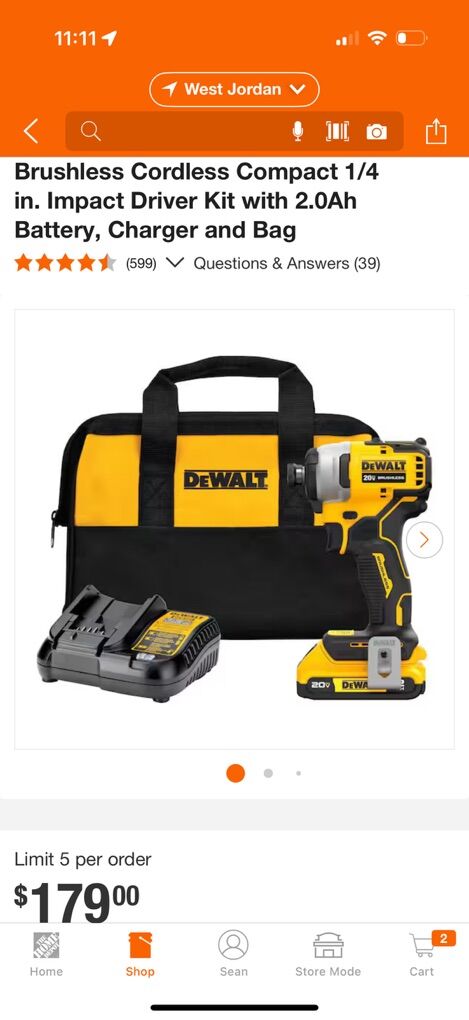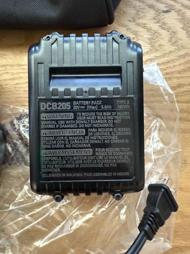 VenmoBrand new. Never been used. Dewalt 20v impact driver brushless model with 5ah battery dated 2025 and charger with bag. Everything you need. Battery has 3 year warranty from date printed on it. Home Depot sells for $179 with smaller battery Impact is DCF809B, battery is dcb205, charger is dcb1102