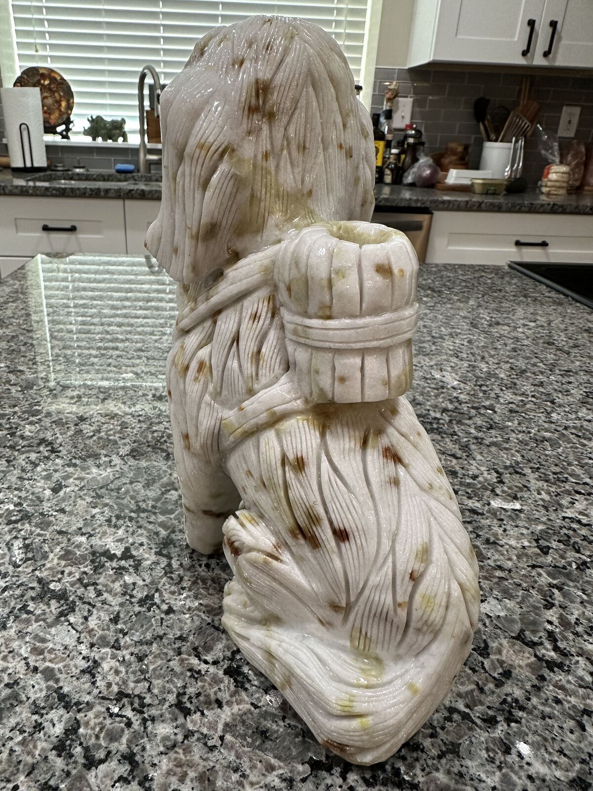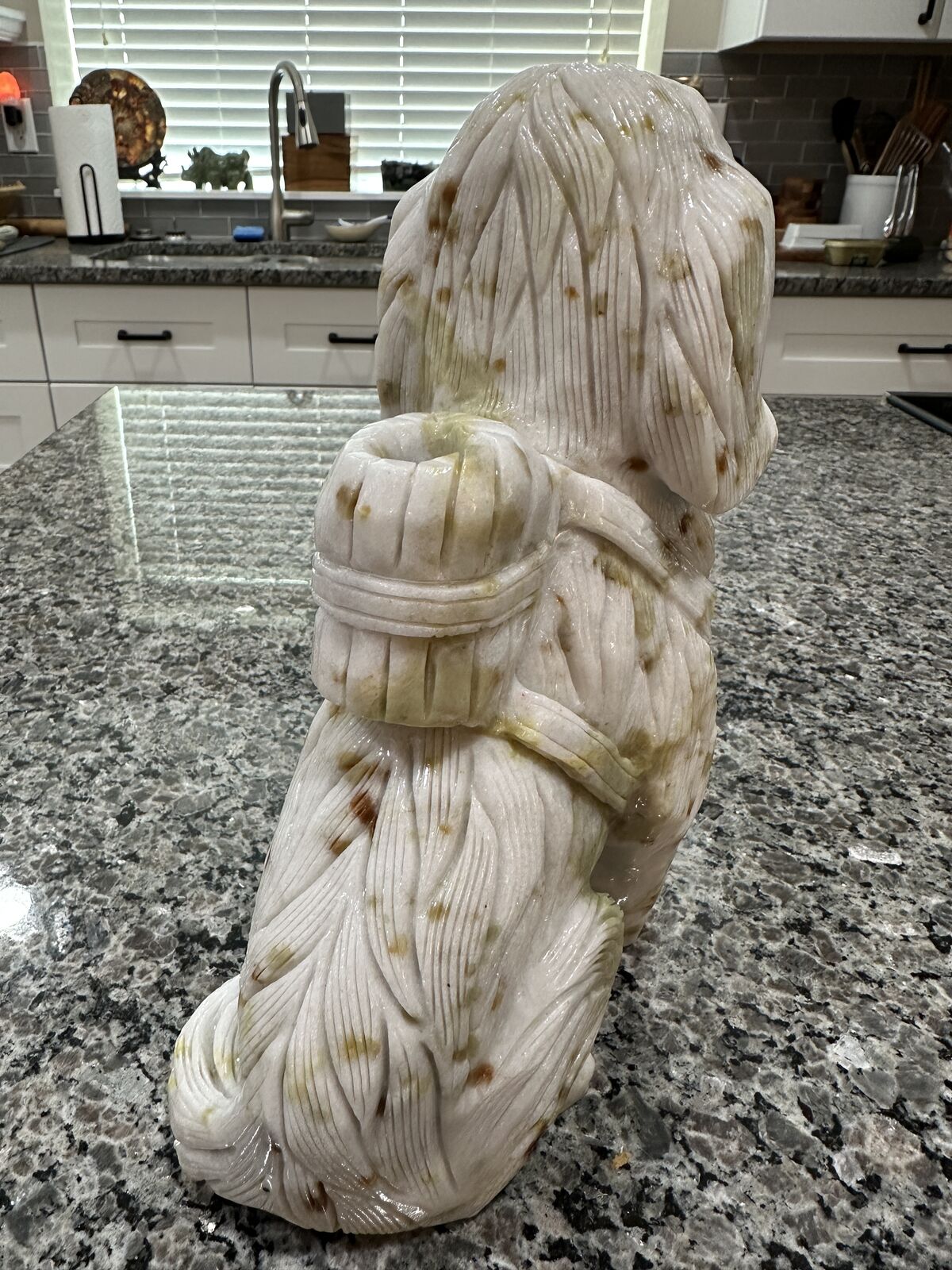 ZelleFor sale is a jade carved cocker spaniel dog. 9.668 Lbs, Approximately 9.5 inches tall, 4 inches wide and 6 inches deep.