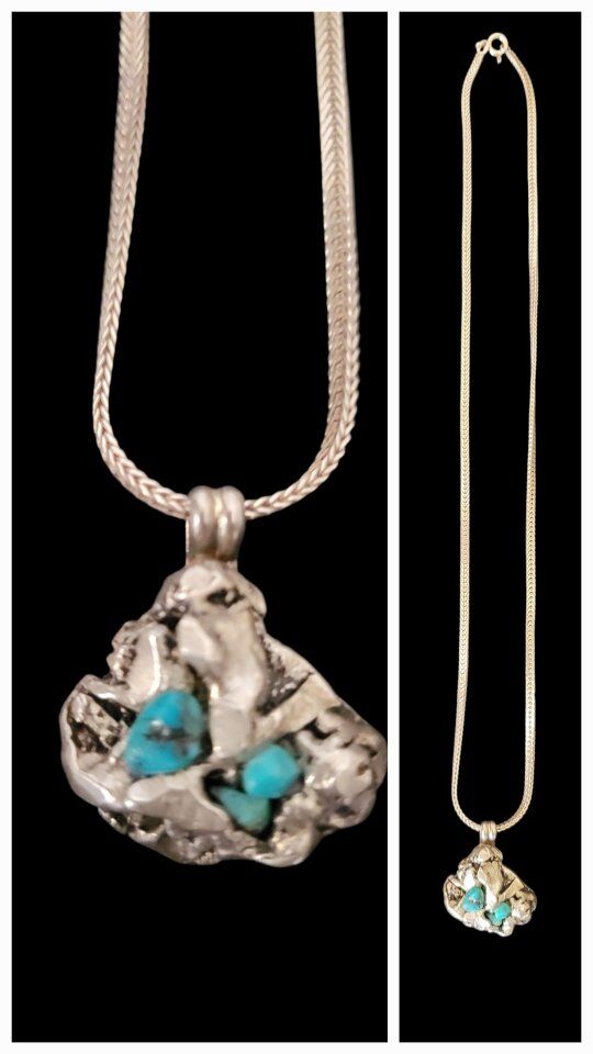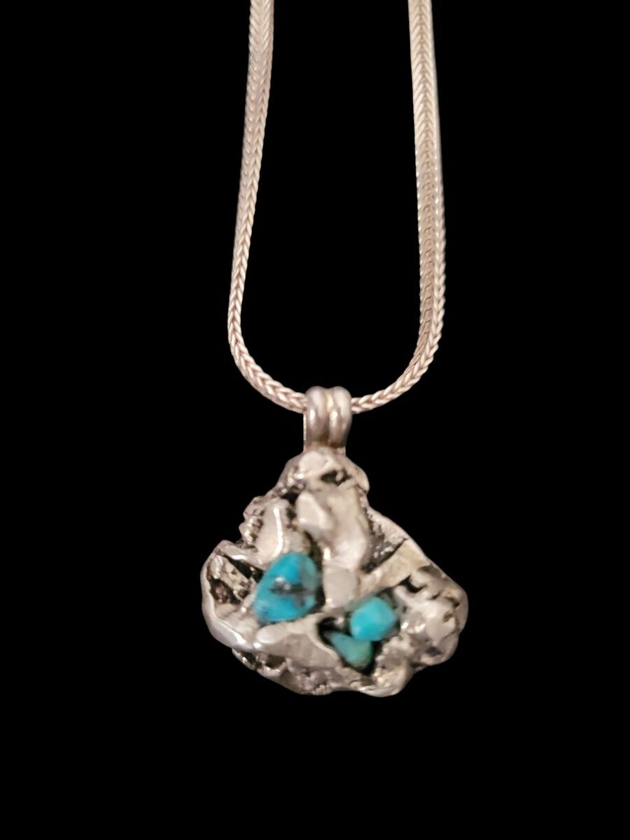 VenmoNavajo Necklace 925 Silver Blue Turquoise Native American Artist 80's inf 702 3558824