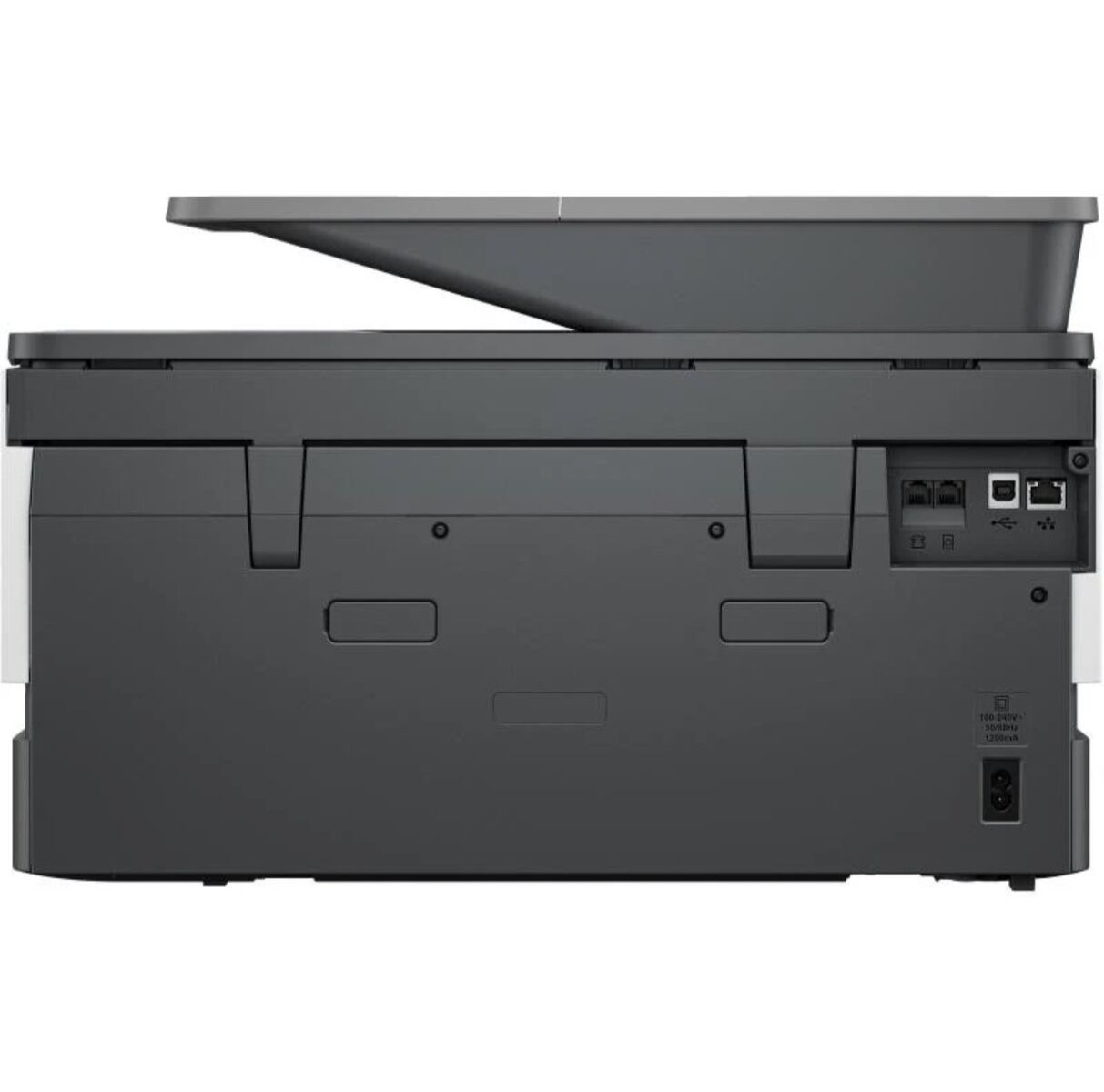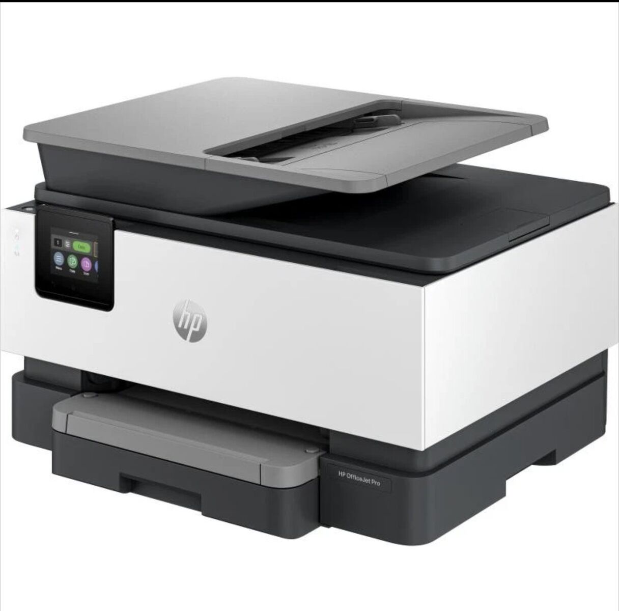 HP OfficeJet Pro 9120e All-in-One Printer, Color, Printer for Small medium business, Print, copy, scan, fax, +; Instant Ink eligible; Print from phone or tablet; Touchscreen; Smart Advance Scan; Instant Paper; Front USB flash drive port; Two-sided printing; Two-sided scanning; Automatic document feeder; Fax. Print technology: Thermal inkjet, Printing: Colour printing, Maximum resolution: 4800 x 1200 DPI, Print speed (colour, normal quality, A4/US Letter): 18 ppm. Copying: Colour copying, Maximum copy resolution: 600 x 600 DPI. Scanning: Colour scanning, Optical scanning resolution: 1200 x 1200 DPI. Faxing: Colour faxing. Duplex functions: Print, Scan, Fax. Maximum ISO A-series paper size: A4. Wi-Fi. Direct printing. Product colour: Grey