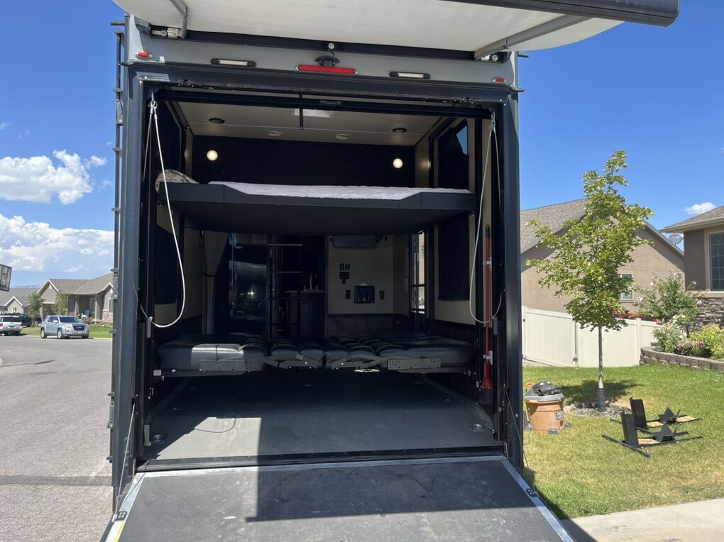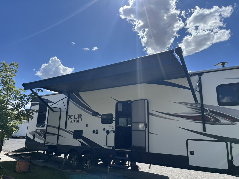 PRICE REDUCED!!!! Selling our beautiful 2017 XLR Nitro 35VL5 38’ fifth wheel toy hauler. This trailer is in great shape and only used 10 times in the last four years. We love this trailer and just don’t use it enough to keep it. Fully winterized every and non ethanol fuel added to fuel tank. New H rated tires installed last year( less than 2000 miles on them). New brakes installed two years ago. Onan 5500 watt onboard generator with 280 hrs in it, oil change done 20hrs ago. Upgraded batteries to increase boon-docking. Wired for solar panels. Plumbed for clothes washer in garage. Fence gate and stairs for back deck. Pull down screen for back gate to enjoy the cool night breeze. Pass thru front storage. On board 30 gal fuel station which provides fuels for generator and toys. 92 gallon fresh water tank with tank heater to prevent freezing in cold weather. 30 gallon black , two 30 gallon grey tanks(one for bathroom and one for kitchen sink and washer hookup. 6 gallon water heater either electric or propane. Outside sprayer with hookup. 12 ft separate garage will fit two seat SXS or up to two full size cruiser motorcycles. Happy jack bed and couch/bed (both queen) in garage. Four seat recliner couch. Single bed in loft, king bed up front. Wardrobe slide-out in master bedroom. 3 tv’s one in master bedroom one living room, and one in garage with outside tv hookups. Dvd player with sound system. Propane /electric fridge and 110v microwave. Lots of storage comes with 50 amp power cord/20 amp adapter/fresh water hose, black tank flush hose, sewer hose with under mount storage. Rear view camera helps when backing and traveling down the road. Trailer comes with anderson hitch if desired. This trailer pulls great and have enjoyed it when we were able to take it out. Asking $32,000 OBO price is negotiable, willing to consider partial trade for an enclosed trailer 14 foot plus. This is truly a great trailer at a good price. It is not perfect, but in great shape. Clean title in hand. Thanks for looking. Call or txt Neal @(801)722-5915 txt pref.