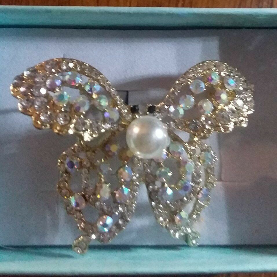 beautiful butterfly pin encrusted with rhinestones and a pearl....