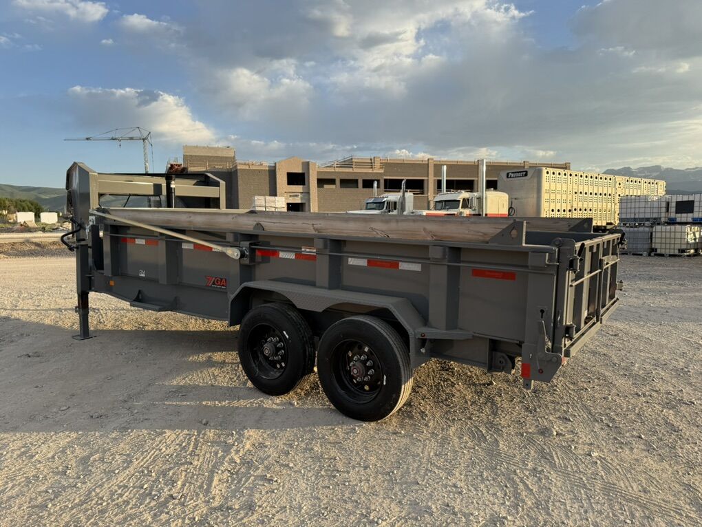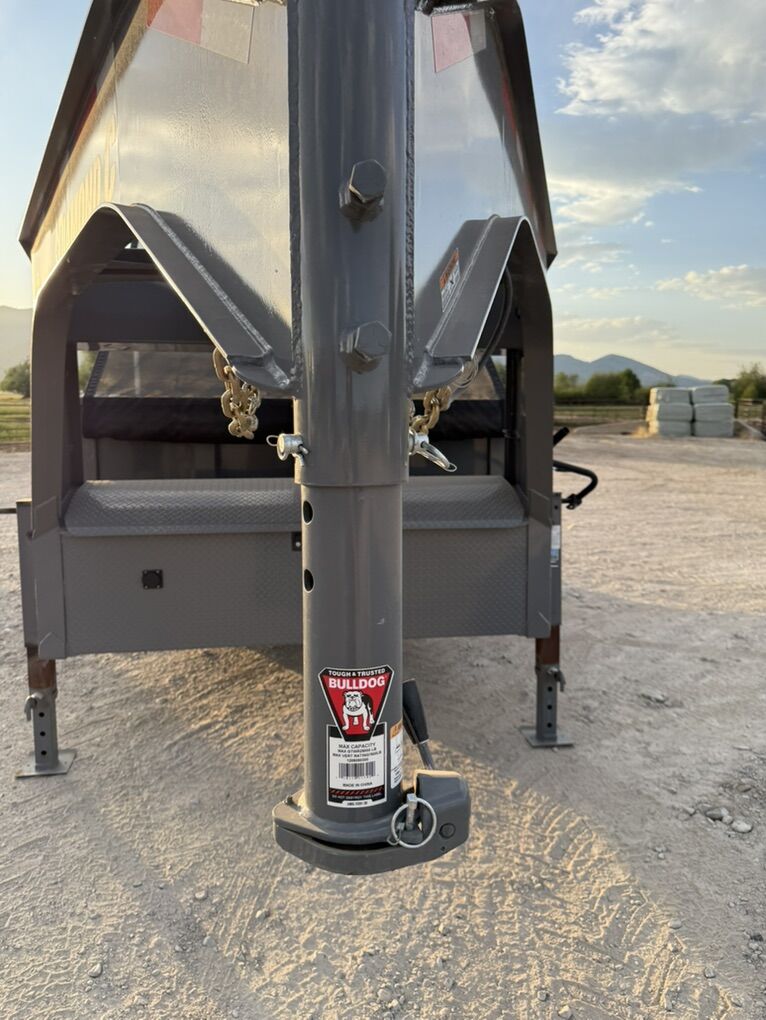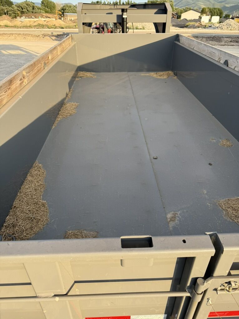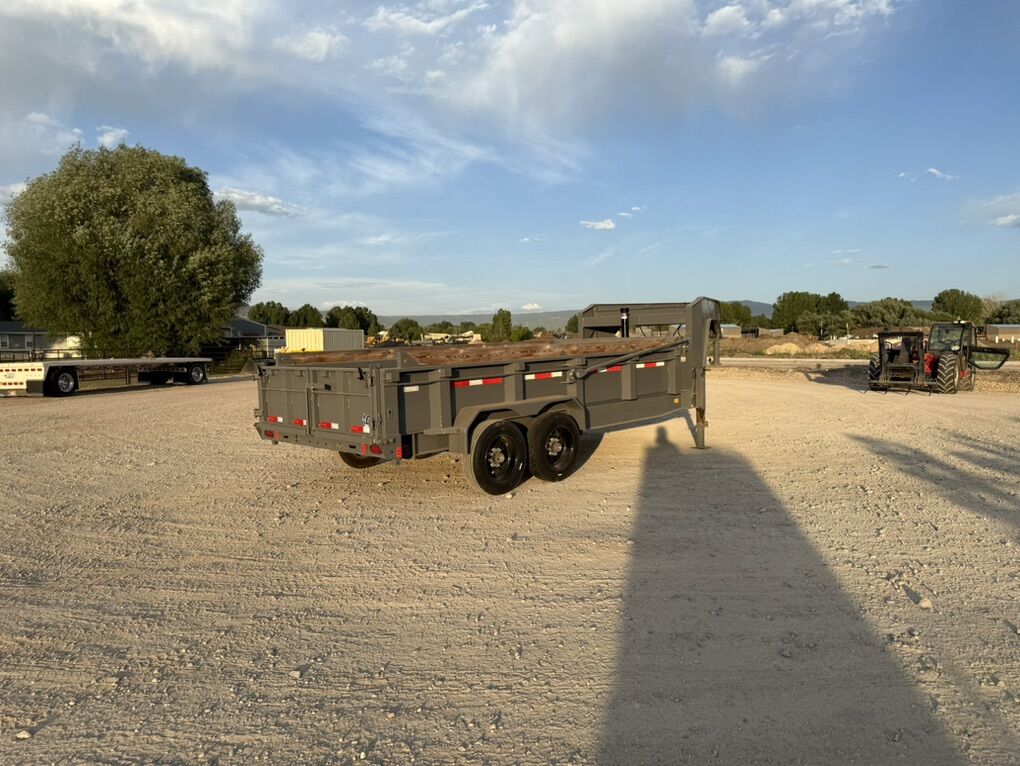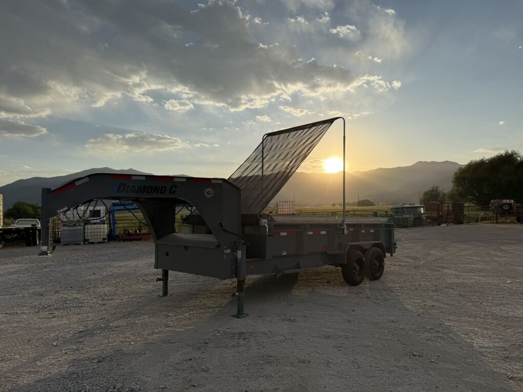 New 2023 Diamond C LPT 16’ Dump Trailer It’s never been loaded (the little bit of hay in it is from it being parked next to a hay stack) Gooseneck 20k rated trailer 215/75r17.5 tires 10k axles Front lifting ram Extra crossmembers (12” center) Heavy floor and walls 24” sides with wood bed side extensions Hand crank auto pull over tarp Barn door and spreader door combo Heavy duty load ramps Front tool box Wide enough to fit most skids and most mini excavators in Call or text any time