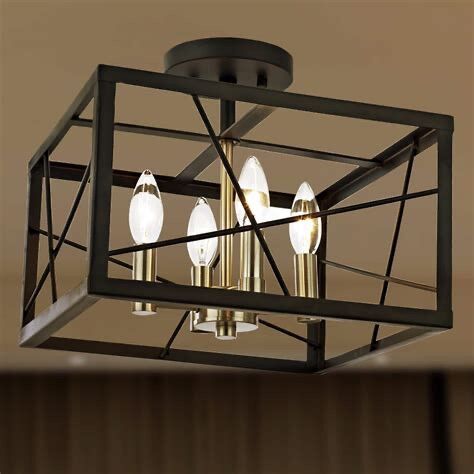 Features: • Matte black metal construction for durability and style • Rectangular open-cage design with geometric cross-bracing • Semi-flush mount, ideal for standard or low ceilings • Compatible with standard E26 bulbs (LED recommended) • Brand new, factory-sealed in box