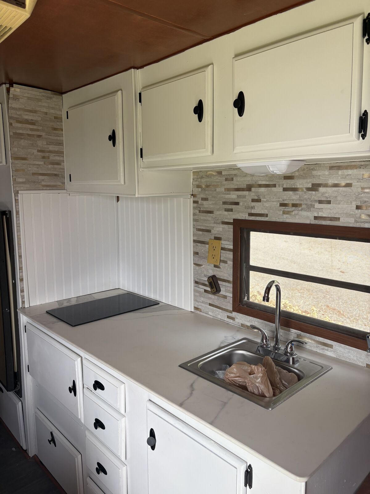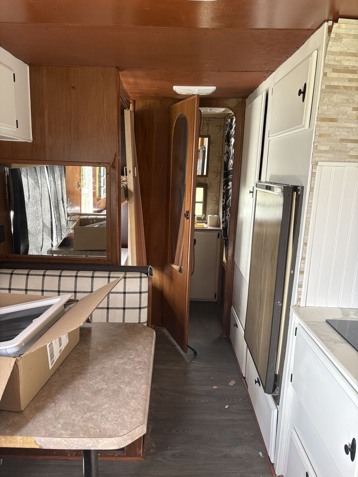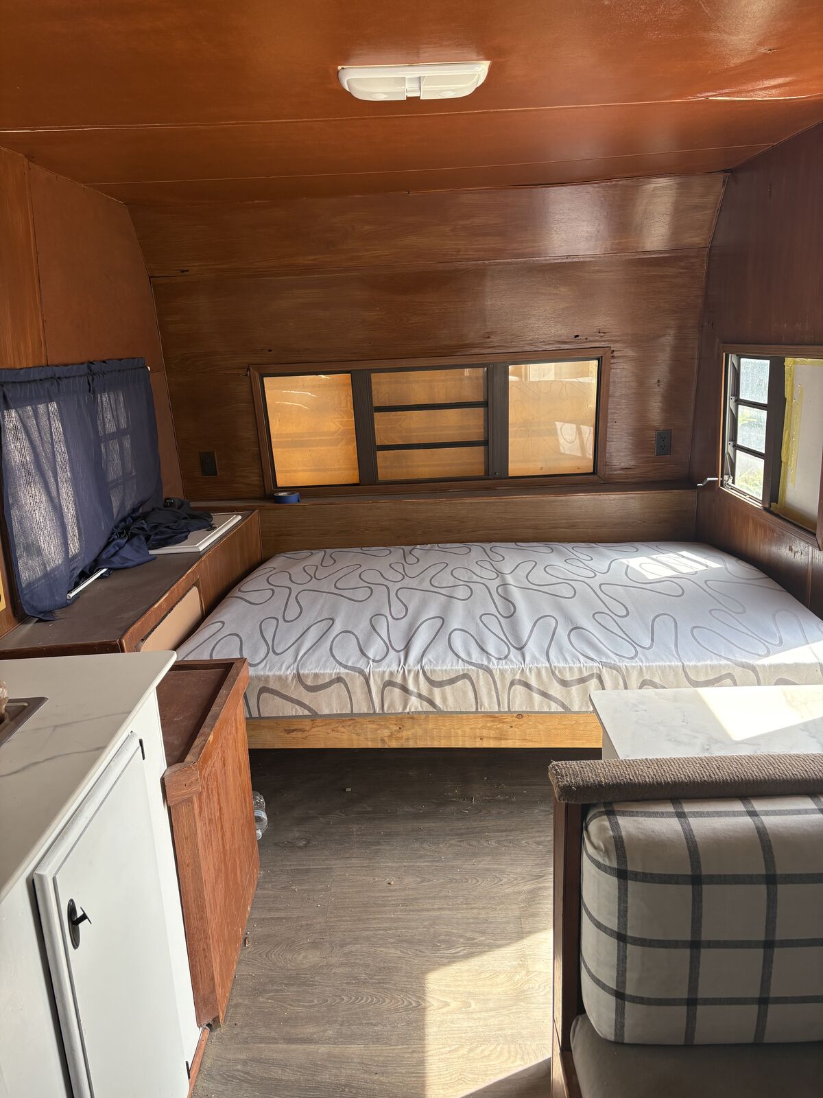 This isn’t a shiny, brand-new trailer- think of it more as a fixer-upper tiny home on wheels. Perfect for DIY lovers, weekend warriors, or someone who just wants the cheapest cabin at the campground.