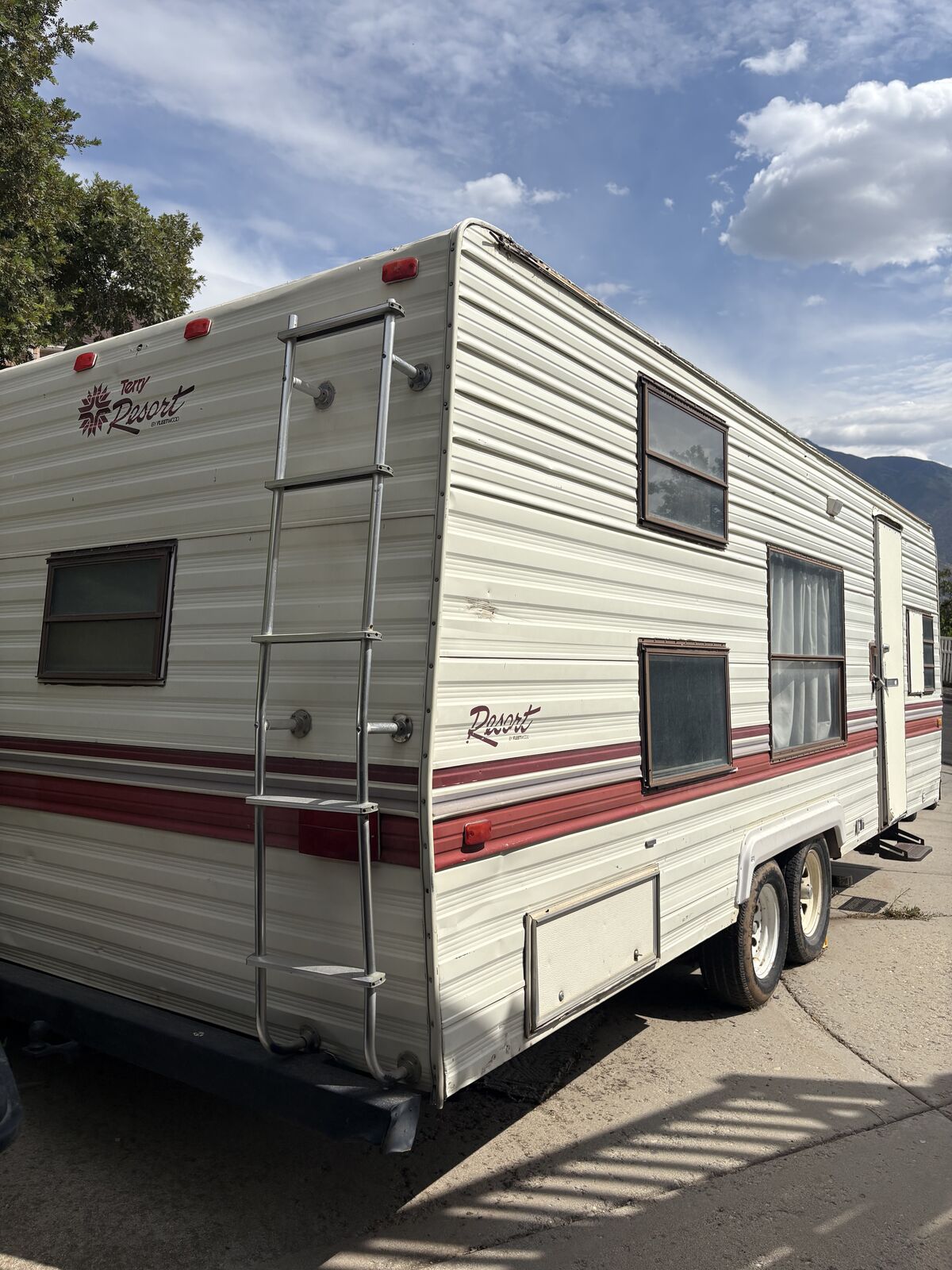Brand/Model: Resort by Fleetwood Length: 24 feet (plenty of space for snacks, naps, and questionable karaoke nights) Tow Weight: 3600 lbs empty Amenities: Comes with two propane tanks (fuel for cooking or escaping zombies). Electrical: Last time we used it, the AC and fridge worked — no promises, but hey, that’s half the fun. Condition: Needs some work, but she’s got good bones and a lot of life left for the right handy camper.