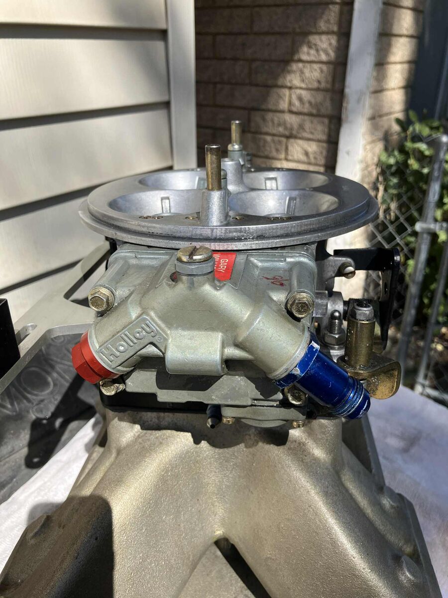 Big Block Chevy , Reher Morrison Edelbrock 454 R intake , Holley Dominator 1050 Carburetor by Gary Williams. Also has Nitrous Oxide systems plate And throttle linkage This is a serious piece ! For 500 cubic inch or larger motors It could use a kit more than likely 1400 cash