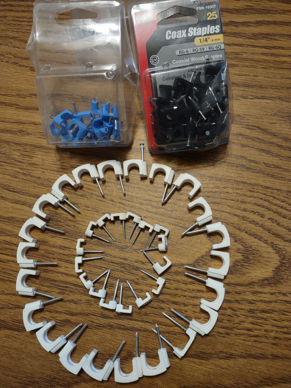VenmoCOAXIAL WOOD STAPLES NEW, Quantity #27, Black, 1/4" , 6mm, PSB-1650T. Retail Value $2.43. ONLY $1. Also, Quantity #15, Blue Staples. $.50. White, 3/8", quantity #22 $1. Also, White, 3/16", quantity #16, $.50. Buy Separately OR all 4 sizes for ONLY $2. Cash/Venmo. In Sandy. 801-201-5350. See other Coaxial Listings by this seller.