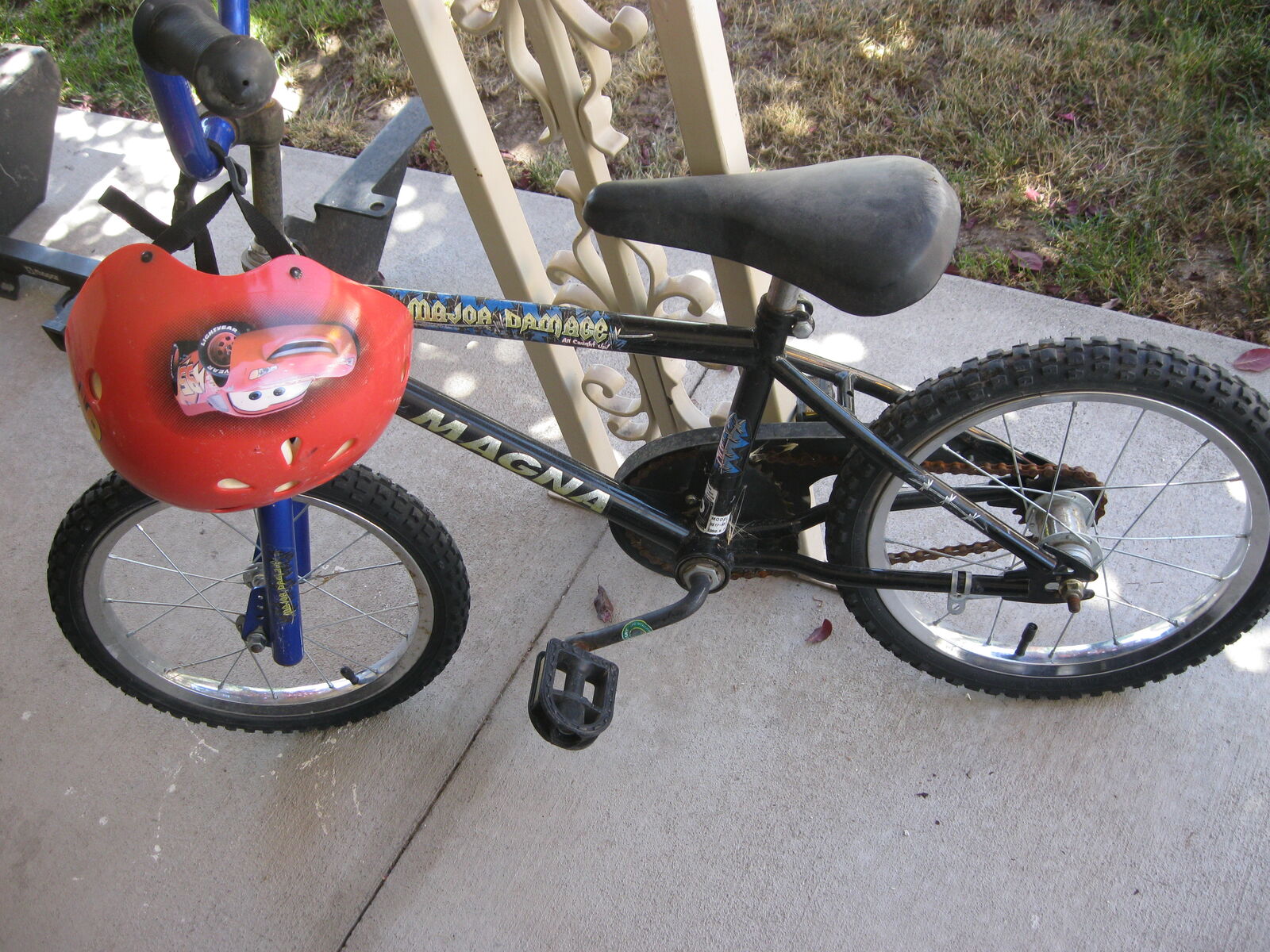 I HAVE 2 KIDS BICYCLES THAT I WOULD LIKE TO SELL AS I DONT HAVE LITTLE KIDS ANY MORE. THEY ARE BOTH 16" BICYCLES AND HAVE LIKE NEW TIRES ON THEM. I JUST REPLACED A TUBE IN THE GIRLS BIKE, SO THEY ARE BOTH WORKABLE NOW. THE GIRLS IS A "I BELIEVE IN FAIRY TALES" BIKE; THE BOYS BIKE IS A "MAJOR DAMAGE" MAGNA AND HAS A HELMET WITH IT. I AM ASKING $15 FOR EACH BIKE, A REALLY FAIR PRICE COMPARED TO ANYWHERE ELSE. PLEASE CONE GET THEM FOR YOUR KIDS TO START LEARNING ON.