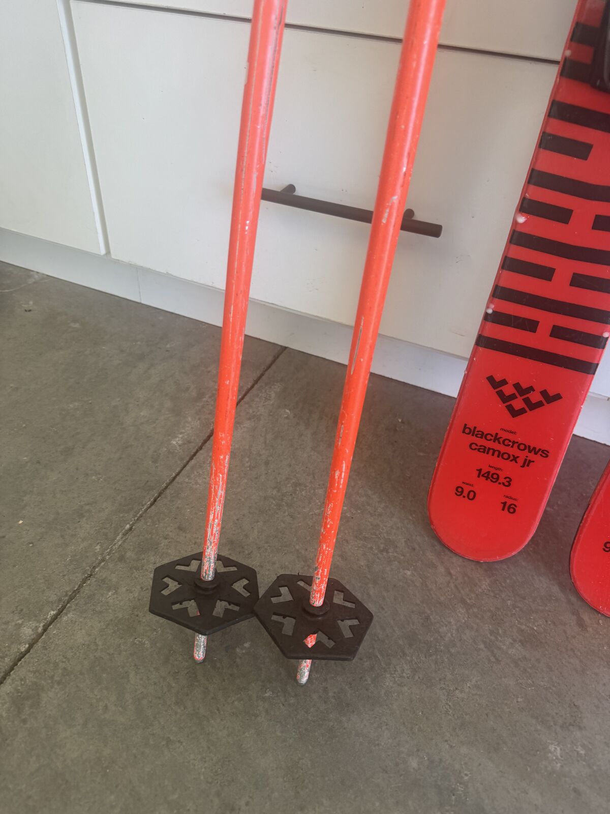 VenmoKid's Black Crows camox jr. skis in size 149cm with Marker Squire bindings (DIN: 3-10) and matching Black Crows poles. All in good shape, no major damage. Skied on one season. Waxed for winter and bindings turned down. Some minor surface rust on edegs, so will need a tune before the season, but no major base damage, etc. Buyer to pick up in Park City. $190 OBO. Cash or Venmo.