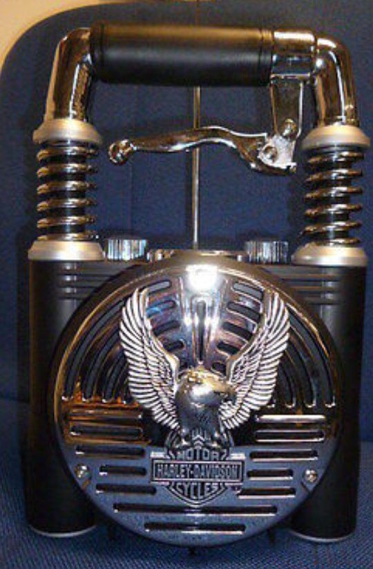 Great gift idea!! Here we have a Harley Davidson Daytona am-fm portable radio-cassette player Very retro - great talking point!! Get your old cassette tapes out the loft and go back in time Fantastic collectors item for Harley Davidson fans Classic styling featuring genuine Harley Davidson eagle Rich sound from 4" 8 ohm speaker Separate volume and tuning controls Chrome-plated springs and speaker grille Brake handle with engine sound Telescope antenna Please note this item operates on mains/batteries (mains adaptor/Batteries not included)