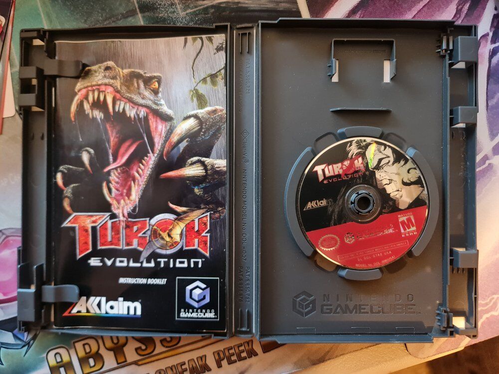 VenmoThe Nintendo GameCube Turok Evolution 2002 is a complete game that includes the manual. This shooter game, released in 2002 in the United States, is rated M for Mature. The game offers exciting gameplay and immersive experiences for fans of the Turok series, making it a must-have for collectors and gamers alike. If interested please let me know. Located in Kearns